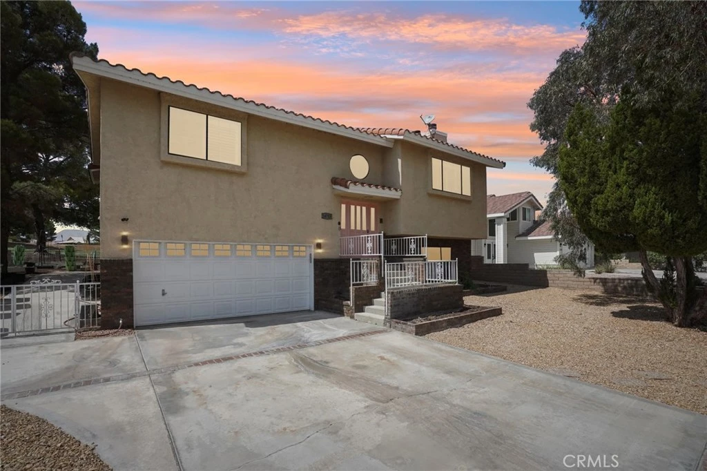 Welcome to 14753 Blue Grass Dr in Helendale, a fully renovated two-story home in the desirable Silver Lakes community. This residence features new flooring, fresh paint, upgraded countertops, modern hardware, recessed lighting controlled by phone app, wooden blinds, and new ceiling fans throughout. The kitchen comes with newer appliances, including a built-in induction grill, and all mounted TVs remain with the home. The downstairs level offers a convenient kitchenette with a wine fridge, small refrigerator, and freezer, making it perfect for entertaining. The master suite includes an updated bathroom with new countertops, while additional highlights include a mini-split system, multiple fireplaces, a heated pool, and an attached two-car garage. Set on an near the golf course, this property combines comfort, style, and access to community amenities such as a private lake, parks, and clubhouse.