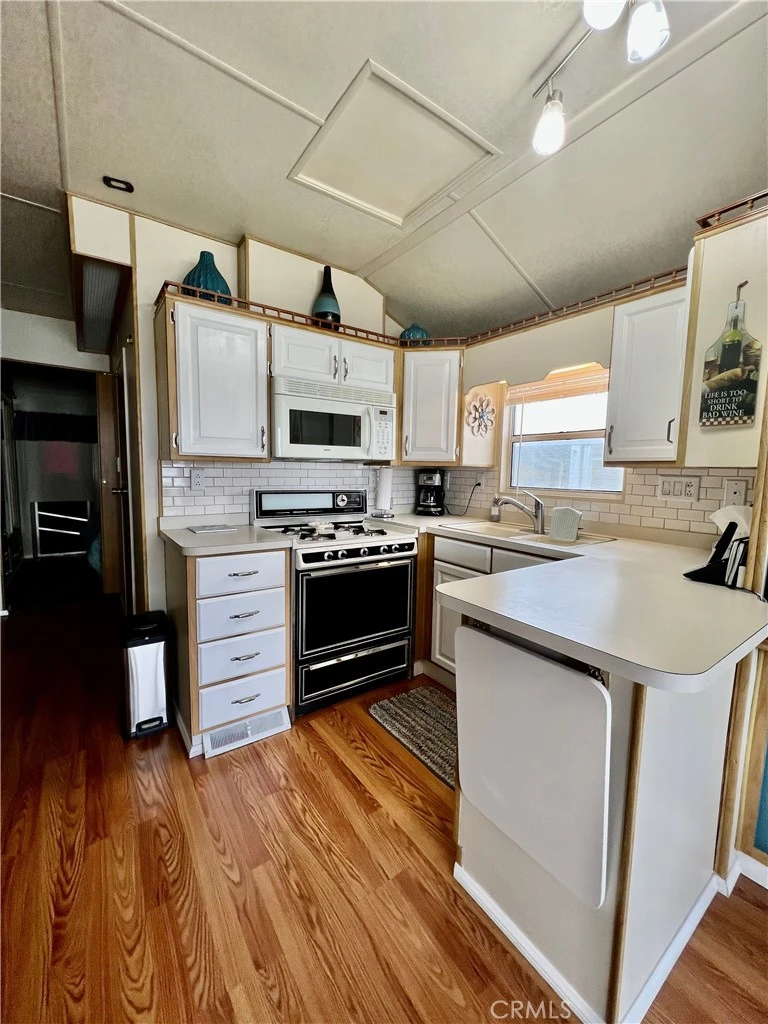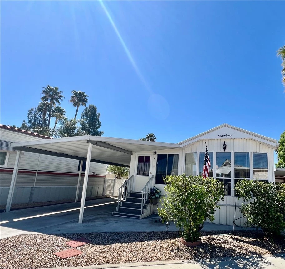 PRICE REDUCED! OWN YOUR LAND! LARGE "A" LOT! MOVE IN READY! Be the King & Queen of your CASTLE! Fully furnished, just bring your toothbrush. Located in the desirable Mt Shadows RV Resort 55+ gated senior community. Featuring 1 Bedroom, 1 Bathroom, full-length grandfathered-in California room, a covered carport and large detached storage shed. Shows beautifully with vaulted ceiling, two ceiling fans and laminated wood flooring throughout. New energy efficient, freestanding HVAC providing heat & air. Kitchen has a freestanding range, built-in microwave and newer refrigerator and is fully equipped with cookware. Master bedroom and hallway have mirrored doors. Bedroom also has doors to bathroom, backyard and patio. Bathroom has shower/tub combo, newer toilet and extra storage cabinets. The California patio room has front, side and back entrances and could easily be used as second bedroom or living space. The backyard has a nice stucco wall and vinyl lattice side fencing. Great for entertaining with a back porch view of the sunset. Two orange trees to enjoy in season. The concrete pad runs under the park model. The roof was redone in 2020. GREAT LOCATION near the main clubhouse, office, pool, hot tub, shuffleboard, billiard room, library, gym, card room, craft room, two laundry rooms, showers, indoor and outdoor kitchen, BBQ area, horseshoes and large auditorium/party room where most of the fun community activities take place. Just stroll on over to enjoy. A second, smaller clubhouse, laundry and hot tub located toward back of park. LOW HOA FEES of "ONLY" $292.00/month INCLUDES WATER, SEWER, TRASH, BASIC CABLE AND INTERNET. WHAT A DEAL! This is resort living at its finest!