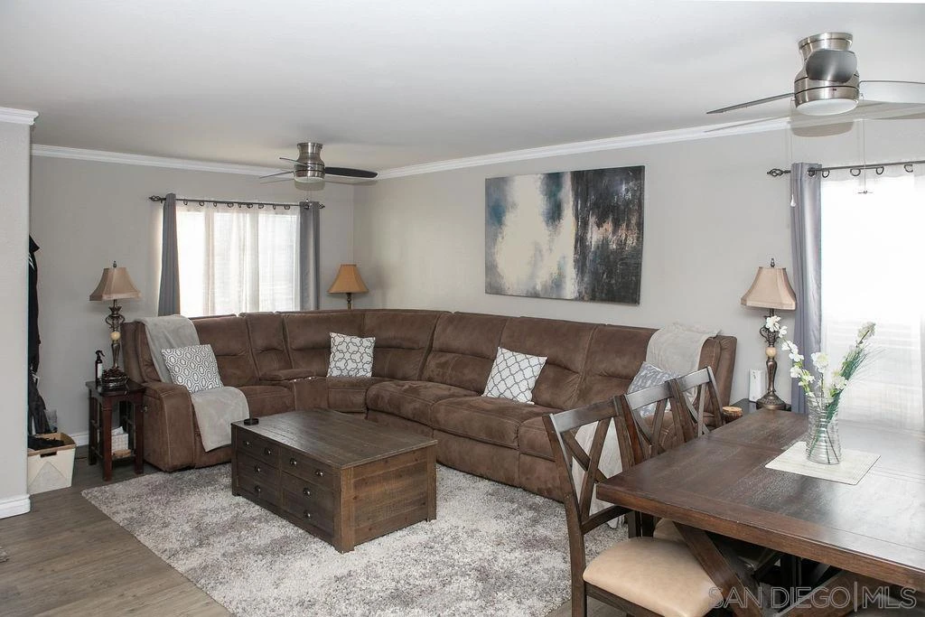 Discover this spacious single-story gem on a coveted corner lot, offering 5 bedrooms, 2 bathrooms over 1,900 sqft of comfortable living space plus a garage conversion with a kitchen, living room, 2 bedrooms and bathroom not included in the square footage (was rented for $1800/mo). The open floor plan features a bright living and dining area, a cozy family room with a charming corner fireplace, and a beautifully updated kitchen with designer cabinets, granite countertops, stylish backsplash, and tile flooring. The primary suite offers a private en-suite bathroom, while the large backyard with a covered patio is perfect for entertaining or relaxing. Enjoy stunning mountain views, no HOA, and no Mello-Roos. Conveniently located near shopping, dining, and major roads, this home also includes a 2-car attached garage plus plenty of driveway parking & a fianced solar system. This West Hemet beauty is a true must-see!
