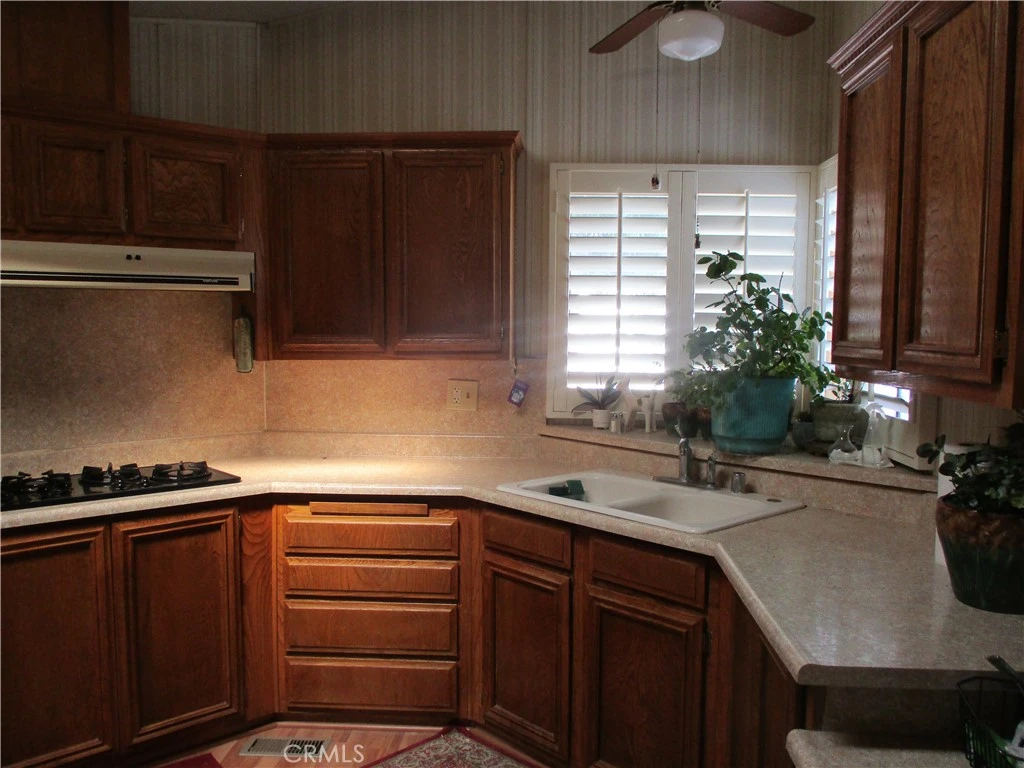 This Lovely spacious manufactured home is located in desirable Maze Stone Village, a 55+ community. This 2 bedroom 2 bath home with additional Guest room/Den combination has a Beautiful views of the valley and surrounding hills that can be enjoyed from your front porch, and from many of the home's windows. It has a sought after Enclosed Garage which is almost necessary in the Hemet Valley heat. Enter through the front door into in the living room onto blonde wood floors. The stone fireplace in the living room provides a warm ambiance on chilly fall days and cold winter nights. The living room hosts an Open Floor Plan with the Dining Room, a spacious Kitchen with plenty of cabinets designed for efficiency that any cook or chef would love. The Ensuite Bedroom can accommodate a King Sized Bed. There is a walk-in closet and a large Ensuite Bath complete with a Jetted soaking Tub, a step in Shower and dual Pullmans. There is a Den/Guest Room off the main living area with double doors and the guest bath has a step in shower and a built in Pullman. Off the kitchen there is a separate Laundry Room with a built-in desk area providing convenience and additional storage. The newer washer and dryer are included compliments of the seller. NO Space Rent! You have Ownership in the development. Monthly HOA Dues include the land tax and water and sewer. Maze Stone Village Amenities include: Pool, Spa, RV Parking, Clubhouse, Office, Library, Walking Trails, Pool Table and more. Enjoy social activities planned by the residents. Two Pets are allowed with no size limit. Call to see today and get Ready to Move!