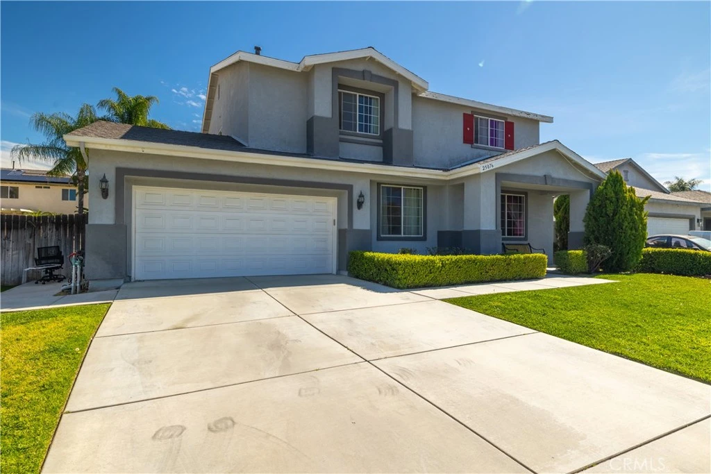 If you’ve been searching for a home with room for everyone, this spacious East Hemet property offers a floor plan that’s hard to find. With a true downstairs bedroom, a large downstairs office that could easily serve as a fifth bedroom, and multiple living areas throughout, this home provides the flexibility today’s buyers are looking for, whether for multi-generational living, working from home, or simply having space to spread out. Step inside to a bright living and dining room combination with laminate wood flooring and an upgraded dining light fixture. The layout then flows into the kitchen & family room, creating a comfortable gathering space for everyday living or entertaining. The kitchen features an extended island, Corian countertops with integrated sink, stainless steel appliances (refrigerator included), a pantry, & durable wood-look tile flooring, along with crown molding and upgraded baseboards. Just off the kitchen, the family room showcases a fireplace with custom mantle and shelving, creating a warm and inviting place to relax. One of the standout features of the home is the highly desirable main-level layout. In addition to the downstairs bedroom with an oversized under-stair closet providing exceptional storage, there is also a spacious office or bonus room with closet that could easily serve as a fifth bedroom. The nearby half bathroom is already plumbed for a possible stand-up shower by utilizing the adjacent linen closet space. Upstairs, a versatile loft offers additional living space perfect for a media room, play area, or second family room. The dedicated upstairs laundry room includes shelving, with washer and dryer included. The primary suite is generously sized and features crown molding, dual walk-in closets, and an en-suite bathroom with dual sinks, a sit-down vanity area, soaking tub, & separate shower. Two additional bedrooms and a full bathroom complete the upper level. The backyard is designed for relaxing or entertaining, featuring a solid wood patio cover with ceiling fans and mounted TV (included), an expansive concrete patio, grassy yard, and storage shed. With plenty of open space, there is also room to add a future pool or create your own outdoor retreat. Spacious layout and flexible living areas offer buyers the opportunity to personalize finishes over time while enjoying a floor plan designed for everyday living. Located in East Hemet with no HOA, low taxes, close to parks, schools, & shopping.
