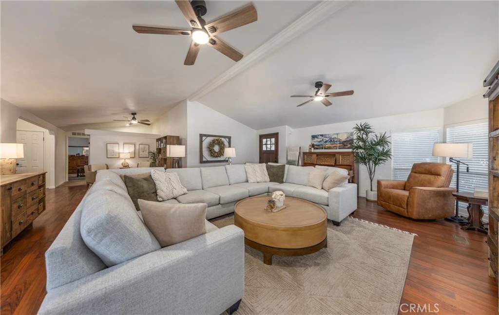 ALL DRESSED UP & WAITING! This desirable single-story TURNKEY home in Seven Hills a 55+ community is move-in ready and packed with upgrades. Offering 3 bedrooms, 2 bathrooms, and 1,820 sq. ft., this home has been beautifully maintained and thoughtfully updated. Step inside to a spacious living room with a separate reading/library area, wood-grain laminate flooring, and recessed LED lighting. The dining room flows seamlessly into the upgraded kitchen featuring granite counters, pull-out pantry cabinets, newer appliances, and plenty of workspace. The primary suite offers a walk-in closet and on-suite bath with a reglazed shower and newer single granite vanity. The additional bedrooms are generously sized, with bedroom #3 featuring a beautiful built-in Murphy bed. Both bathrooms have reglazed showers/tubs, updated fixtures, and granite vanities. Throughout the home, you’ll find fresh interior and exterior paint, ceiling fans in nearly every room, newer fixtures, and built-in hallway cabinets for extra storage. Outdoors, enjoy the completely landscaped front and backyard with sprinklers, a solar-powered fountain, and no neighbors directly behind—just a peaceful walking path for extra privacy and enjoyment. A newly refreshed wood patio cover creates the perfect spot for gatherings or barbecues. Laundry is currently in the garage, but with an additional cabinet-filled room inside, the option is there to bring it indoors. As part of this community, you’ll also have access to fantastic amenities including a golf course, swimming pool, and a variety of activities—though participation is completely optional. BONUS: Low HOA's and Low taxes! DON’T MISS this FABULOUS move-in ready home—you won’t be disappointed!