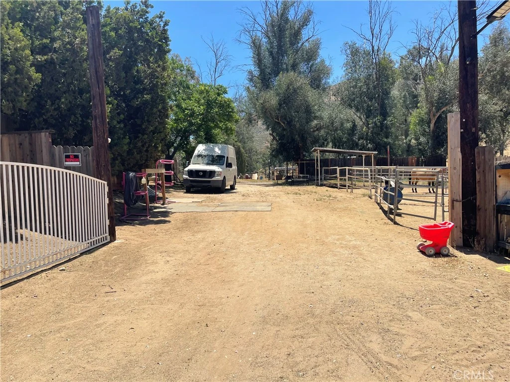 RANCH PROPERTY – 4.14 ACRES! 2 HOMES ON TOP! Flat, fully usable, and fenced land ideally located just off State Highway 74 and minutes from the 215 Freeway. Situated in the sought-after "Green Acres" area, this property features cross-fenced pastures and 5 horse stalls with water access. Improvements include a 3-bedroom, 1-bath main home and a single-wide mobile home with 1 bedroom and 1 bath. Utilities include separate SoCal Gas and Edison meters, two septic systems, city water, and a private well. Incredible potential for a ranch, RV park, nursery, or a range of agricultural or residential uses. Buyer to perform their own due diligence.