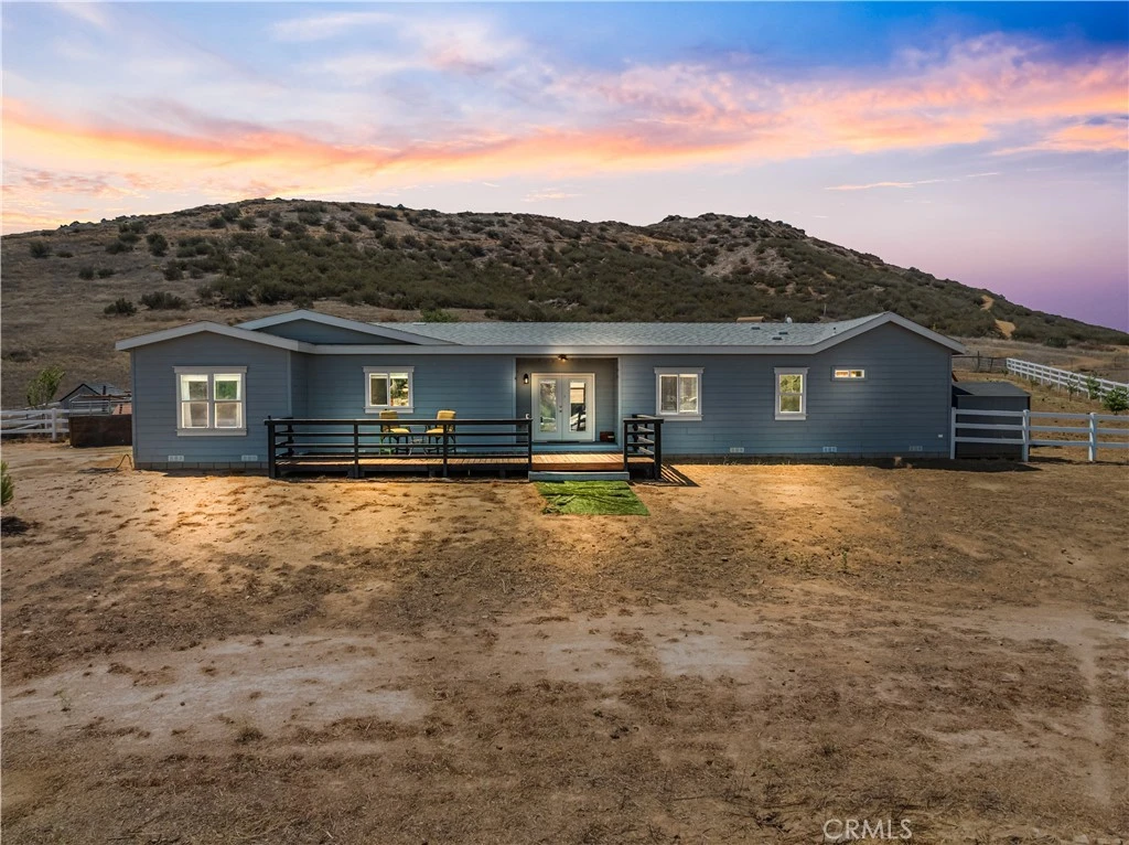 Perched atop a gentle hill with breathtaking, panoramic views of Lake Skinner and Diamond Valley, this stunning Sycamore Springs Ranch retreat spans nearly 20 acres of serene California countryside. This turnkey 4-bedroom, 2-bath home effortlessly blends modern comfort with rustic charm, featuring an open-concept floor plan, gleaming granite countertops, and all major appliances included. Step outside onto the wrap-around deck to soak in the sweeping vistas or enjoy the professionally graded backyard, cross-fenced pastures, and over 10 mature fruit trees—perfect for horses, livestock, orchards, or simply a private escape. Additional highlights include three versatile storage sheds, two dog kennels, a chicken coop, and a Jacuzzi (2023) for ultimate relaxation. Just a short 20-minute drive to Temecula’s renowned wineries, dining, and shopping, this property offers a rare chance to own your own slice of tranquility while staying connected to all the lifestyle amenities you crave. Your dream California retreat awaits!