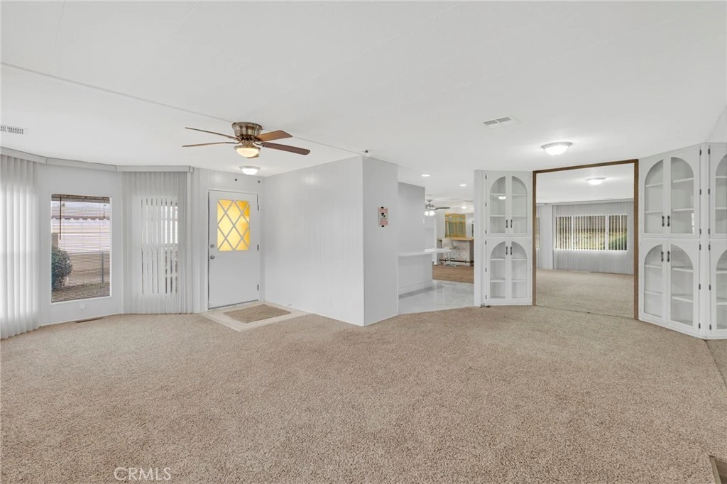 Welcome to this very spacious three-bedroom, two-bath home offering numerous upgrades throughout. Recent improvements include new tile flooring in the kitchen and bathrooms, a new oven and range, a new kitchen sink with updated faucets, and a newer HVAC unit. Entertain with ease at the private bar area, perfect for gatherings and relaxation. An additional bonus room provides flexibility and could easily be converted into a fourth bedroom, office, or hobby space. Enjoy your morning coffee in the cozy sunroom during the winter months or relax on the front porch in the summer. The wrap-around concrete driveway offers convenient access and ample parking in addition to a one car attached garage and RV cover. Located in a 55+ community where you own the land—no space rent. Conveniently situated in Bautista estates Homeowners association that has very reasonable annual fee. Right by a senior center and close to a local police station. Priced to sell—schedule your private showing today.