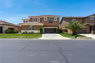 Amazing English Tudor style Equestrian estate perfect for your horses and animals! Big and beautiful, this home is situated on a completely fenced and gated one acre lot boasting 4,200 sq. ft. with 6 beds, 4 1/2 baths and 2 fireplaces! Huge lot with plenty of room for RV's, trailers, boats and all your toys! Complete with 2 staircases front and rear, formal living room with fireplace, formal dining room, upgraded kitchen with granite countertops and subway tile back splashes, newer stainless appliances, breakfast nook, interior French doors, additional family room/6th bedroom with a separate fireplace as well and remodeled bathroom. Spacious sized rooms with artistic ceilings and large bathrooms. Marble countertops and flooring in main bathroom. Upstairs includes a loft library and an upstairs laundry room to make living easier. Large closets and immense storage space of multiple cabinets and shelving throughout. This gorgeous water saving artificially turfed and landscaped backyard with fruit trees is perfect for entertaining. A large alumiwood covered brick patio looks out to the glistening pool, along with 2 Spas and 2 more alumiwood gazebos and lounging areas for family and friends. Front yard landscaping screams curb appeal with trees, queen palms, decorative rock beds, and natural grass. Two entrance gates with side car entrance gate that is motorized. Attached oversized two-car garage with an additional detached two-car garage perfect for a shop, hobby, personal gym/workout room or can be turned into living quarters. 15x80 RV parking complete with hook-ups, custom dog kennels. Upgraded newer vinyl windows, newer lighting, 2 A/C units and 2 water heaters, along with a OWNER OWNED 66 panel solar system to keep those energy bills down and LOW TAX RATE area! This home is fine living at it's best and truly has it all!