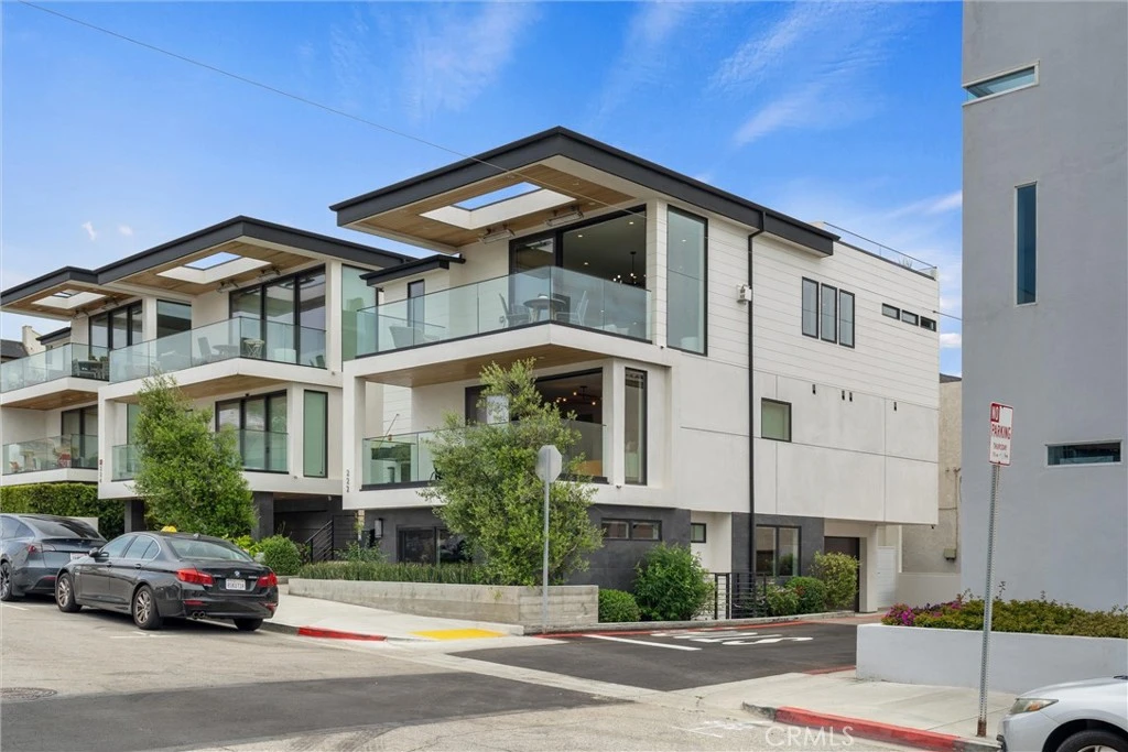 Clean lines, cool ocean breezes, and sophisticated living align at 222 2nd Street. This 5 bedroom, 4.5 bath home is perfect for casual beach days or elegant dinners on one of the many ocean view balconies. Located steps from the ocean, you can rinse the sand off from your beach day in an outdoor shower and then step back onto the beautiful white oak floors of your modern home. This striking 3,457 sq. ft home is positioned on a corner lot which allows for plentiful sunlight and a spacious feel. All levels in this chic home are conveniently connected through a 4-stop elevator. It has a 2-car garage and a driveway for extra parking, a luxury for the sand section. This Control4 operated smart home includes controlled lighting, blinds, security, and in-ceiling speakers throughout, and for comfort, there is temperature controlled multi-zone heating and AC. Other amenities include a built-in central vacuum system, and for safety, a central fire sprinkler system. When preparing for your sunset dinner party, the immaculate kitchen boasts all your favorite high-end appliances from Wolf to Bosch to Sub-Zero. Spend your evenings outside on the rooftop deck (plumbed for a hot tub) or inside, lounging in the large bonus room/bedroom for a movie or glass of wine. The possibilities are endless at this stunning home, so come see for yourself!