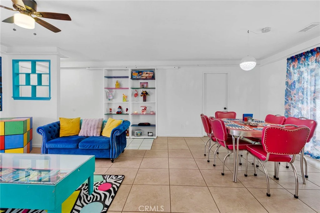 Every home has a living room. Not every home has a hidden SPEAKEASY!! Welcome to this truly one-of-a-kind home in Hesperia CA. This 3 bedroom, 2 bathroom home offers 1,694 square feet of living space on an expansive 17,727 square foot lot, with an oversized 2 car garage, providing plenty of space for both indoor and outdoor living. Step inside to a spacious open floor plan designed for comfort and functionality, featuring great natural light, breeze ways, and abundant storage - making it ideal for everyday living as well as entertaining. What truly sets this home apart is its hidden speakeasy, a rare and unforgettable feature. Behind sliding bookshelves, you’ll discover a private lounge space that feels like stepping into a time capsule, creating the perfect atmosphere for entertaining guests or enjoying a unique retreat within your own home. The backyard offers two large storage sheds equipped with built-in shelving for excellent organization. Both sheds feature a convenient roll-out shelving system, allowing shelves to slide outward for easy access to items stored toward the back or center of the shed, perfect for organizing bins, tools, and seasonal items. The expansive lot also provides ample parking for RVs, boats, trailers, work trucks, and even large commercial vehicles, making this property ideal for truck drivers, contractors, or anyone needing extra space for equipment and recreational vehicles. Conveniently located just minutes from the historic Hesperia Golf & Country Club, along with nearby shopping, dining, and commuter routes, this property offers the perfect blend of character, space, and convenience. Don’t miss the opportunity to own one of Hesperia’s most unique homes.