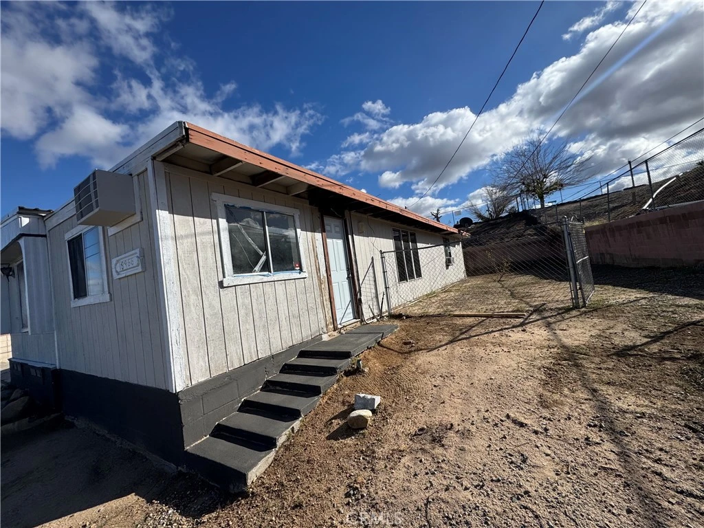 Manufactured Home on Owned Land – Fixer Opportunity Manufactured home offering 2 bedrooms and 1 bathroom with approximately 1,248 sq ft of living space, situated on a 7,424 sq ft lot. Land is owned (no space rent). Property requires repairs and updating. Located in a quiet neighborhood with no neighbors directly in front, providing open desert and flatland views and added privacy. Lot offers space and flexibility for improvements. Property is being sold as-is. Buyer to verify all information including square footage, lot size, condition, zoning, and utilities.