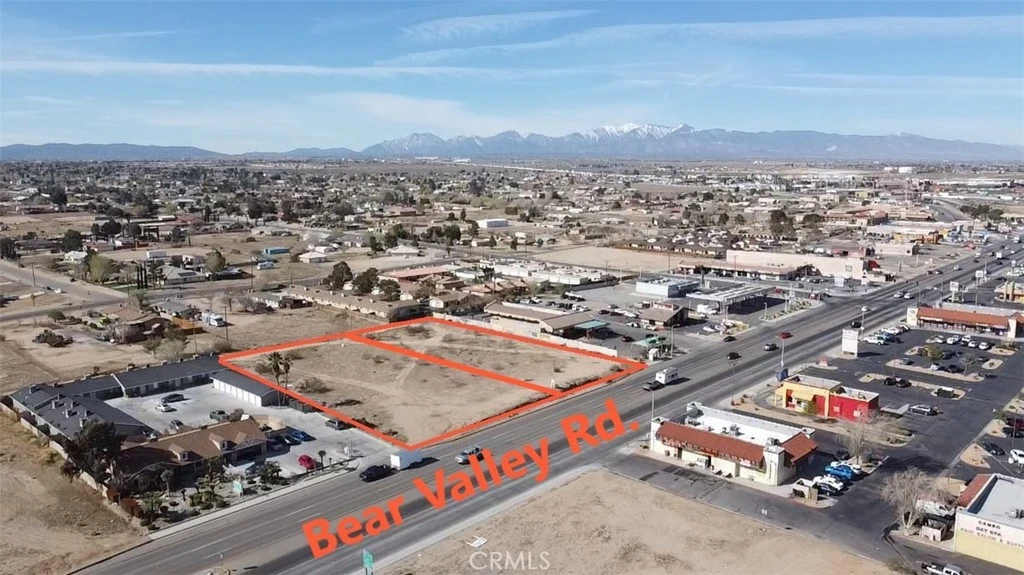 2 adjacent lots with 261 feet frontage on Bear Valley Road. Between cottonwood and Locust Ave. No median strip, one of the fewest lots where left turn to and from opposite lane is permissible. Less than 1/2 mile to interstate 15 on/off ramp. Zoned C2 and general commercial. All utilities are available. Buyer to verify all information.
