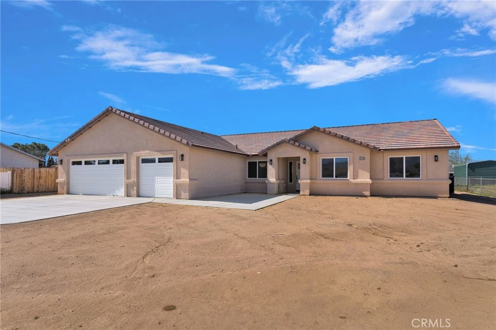 Welcome to wide open living in Hesperia. This brand new home sits on just under a half acre and perfectly blends modern style, privacy, and the kind of space that makes High Desert living so special. From the moment you pull up, you’ll notice this home was thoughtfully designed with both comfort and entertaining in mind. Inside you’ll find 4 spacious bedrooms, 2.5 bathrooms, and a 3 car attached garage, all wrapped into a bright open layout with soaring vaulted ceilings and beautiful finishes throughout. The flooring is a tile wood plank style that gives you the warm look of wood with the durability and easy maintenance of tile. The kitchen is truly the centerpiece of the home. It features a massive quartz island that’s perfect for gathering with family or friends, matching quartz countertops, stainless steel electric appliances, and a generous walk in pantry that keeps everything organized and within reach. Just off the kitchen is a formal dining room that adds a touch of elegance for holidays or dinner parties. The living room feels both spacious and inviting with a beautiful electric fireplace that adds warmth and style without the hassle of gas. The entire home is fully electric, designed for efficiency and modern living. The primary suite is a retreat of its own, featuring a custom hand laid tile shower that brings a high end spa like feel to your daily routine. Step outside and you’ll appreciate the freedom that comes with nearly half an acre. The property is fully fenced, offers RV parking, and features a large covered back patio that’s perfect for relaxing evenings, weekend barbecues, or simply enjoying the quiet desert views. And with paid off solar already installed, you’ll enjoy lower monthly energy costs from day one. If you’ve been looking for a brand new home with space, style, and room to breathe, this one checks all the boxes.