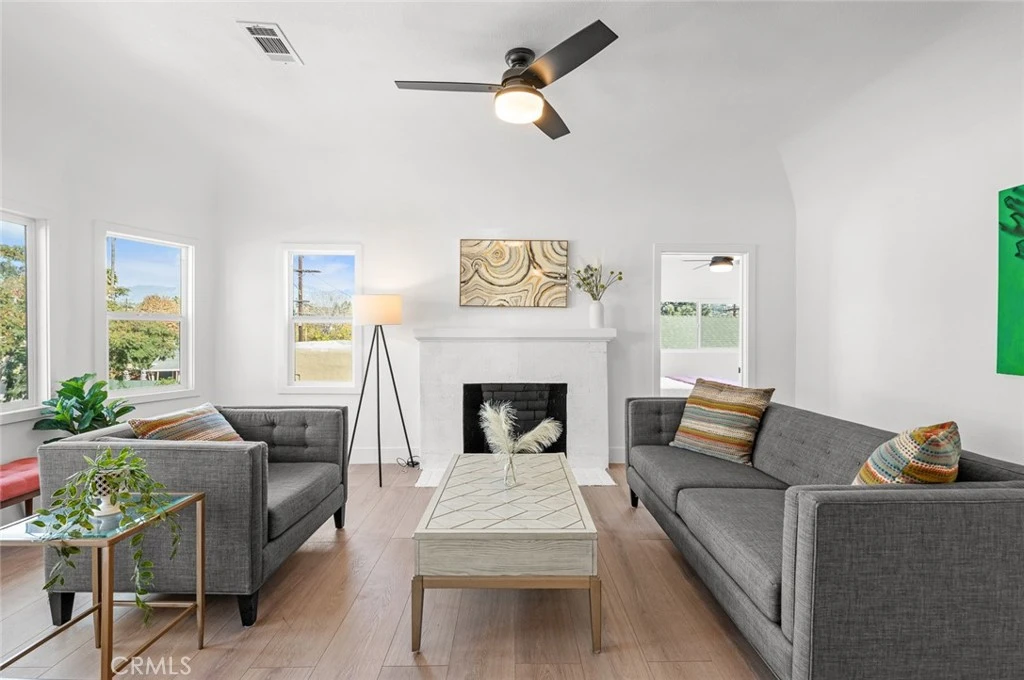 Welcome to 5116 Longfellow St., Los Angeles – an exquisitely remodeled residence that seamlessly blends modern luxury with the timeless charm of the 1920s. Step into this stunning home and be captivated by the grand living area featuring a large bay window that offers Pica boo mountain top views. The open floor plan is highlighted by seamless, high-quality laminate flooring and fresh, modern paint throughout. The brand-new gourmet kitchen is a chef’s delight, boasting a six-burner freestanding oven, stainless Farmer sink, stainless steel refrigerator and dishwasher appliances, and sleek quartz countertops. A breakfast bar and formal dining area provide versatile options for dining and entertaining. The primary suite is a luxurious retreat with a spacious bedroom and adjoining sitting area, complemented by a walk-in closet and a beautifully remodeled En-suite bathroom. This master bath is designed with elegance in mind, featuring a walk-in shower adorned with premium tile, a double-sink vanity, and bronze fixtures that add a touch of sophistication. The wide hallway leads to two additional bedrooms, each showcasing new dual-pane windows and mirrored wardrobe closets. The second bathroom has also been tastefully renovated, featuring a walk-in glass shower with upscale tilework, a custom quartz vanity, and refined finishes. A sizable guest bedroom on the opposite wing of the house provides added privacy and includes a walk-in closet with mirrored doors. The cozy living room is the perfect spot to unwind, with a charming fireplace and graceful ceiling details. This home boasts a rare convenience for Los Angeles: abundant parking with a one-car garage and space for up to four additional vehicles. An extra room, accessible through the garage, can be used as a gym, workshop, or bonus space tailored to your lifestyle. Enjoy outdoor living with the expansive, fully hardscaped rear yard that features a covered barbecue area complete with an outdoor bar and sink—ideal for entertaining. Additional storage rooms are tucked into the backyard, providing plenty of space for your belongings. The home is equipped with a brand-new, large-capacity HVAC unit to ensure year-round comfort. With its impeccable finishes and thoughtful design, this property is truly move-in ready. Don’t miss out—schedule your showing today and introduce your clients to this one-of-a-kind home!