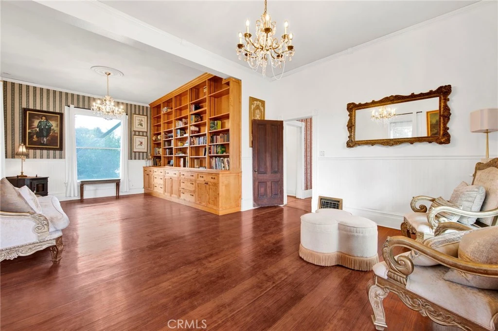 AMAZING Historic 1887 Victorian Estate in the heart of Highland, featuring 5 bedrooms, 1.5 baths, and approximately 2,553 sq ft of living space, the residence sits on an expansive 32,510 sq ft lot—nearly ¾ of an acre—offering endless possibilities, featuring mature citrus trees that create an ideal setting for a personalized private retreat. From the moment you arrive, the iconic wrap-around porch and upper balcony capture the elegance of a bygone era. Inside, soaring 12-foot ceilings, built-in bookcases, and intricate woodwork highlight the home’s exceptional craftsmanship, while award-winning landscaping provides outstanding curb appeal. The main level includes a spacious living room, formal dining room, kitchen, bedroom, half bath, and laundry area. Upstairs, four additional bedrooms and a full bath provideing ample space for family, guests, or home office use. Offered AS-IS, this truly one-of-a-kind Victorian is ideal for those who value character, history, and the opportunity to create a lasting legacy. This property is a rare slice of Highland History. This rare opportunity offers ownership of a beautifully preserved historic home, protected under the Mills Act for potential property tax savings.