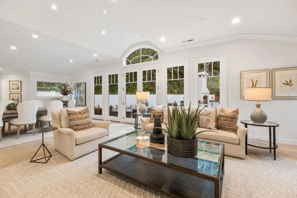 Elevated on nearly one acre of landscaped grounds, this newly updated single-level property offers exceptional scale, flexibility, and presence in a close-in setting. Updates include brand new European white oak engineered floors throughout, newly painted interiors and cabinetry, plus recently remodeled baths and updated HVAC. The foyer opens to a light-filled living room with waterfall view and dramatic two-way fireplace with carved marble surround flanked by built-ins. A generous great room follows, featuring a barrel-vaulted ceiling, expansive wall of glass, formal dining area, and a well-appointed kitchen with granite countertops, large island beneath an operable skylight, premium appliances, and banquette seating. A separate wing has 4 bedrooms and 2.5 baths, including a spacious primary suite with remodeled luxury bath. 3 additional bedrooms include one customized for office use and two with outside access and shared bath. A detached ADU with full kitchen, bath, walk-in closet, and private 2-car garage (in addition to the main home 2-car garage) adds outstanding flexibility. Outdoor living includes paver patios, synthetic lawn, and an outdoor kitchen with gas and conventional barbecues. Excellent Hillsborough schools and just over one mile from Broadway shops and dining.