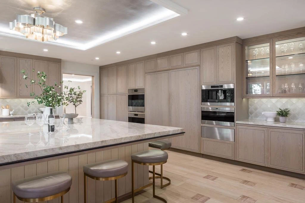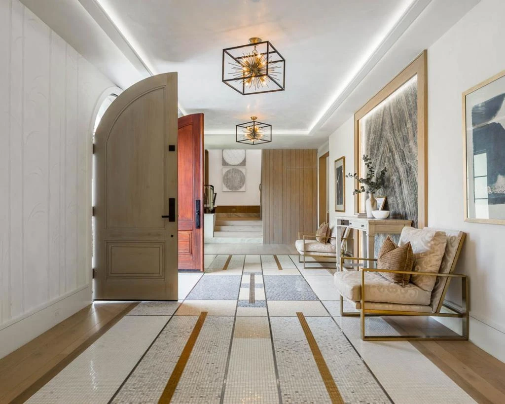Almost fully rebuilt in 2022, this Santa Barbara-style Mediterranean in Hillsborough blends timeless architecture with modern systems and resort-style living. Interior design by JD Bartell creates a truly special & cohesive residence for daily living & entertaining. The home offers up to 6 bedrooms & 6.5 bathrooms with Venetian plaster throughout, custom white oak floors, seamless cabinetry & doors with a dramatic staircase. This home includes radiant heat and air conditioning with multiple zones, integrated security cameras, lighting & audio. The chef's kitchen features a huge custom book-matched island with top-of-the-line appliances, dual sinks, ample storage, plus a temperature-controlled wine cellar, open to the large family room. Extensive upgrades include 400-amp electrical service, new copper plumbing and wiring, dual internet, 19.5 kWh solar, a 22 kWh Generac backup generator, tankless water heaters, & whole-home water filtration. Resort-style grounds include fruit trees, drought-tolerant landscaping, smart irrigation, a resurfaced pebble pool with water features, travertine hardscape, circular paver driveway, iron gates, and an outdoor BBQ. A rare offering combining architectural character with a more transitional interior full of custom upgrades.