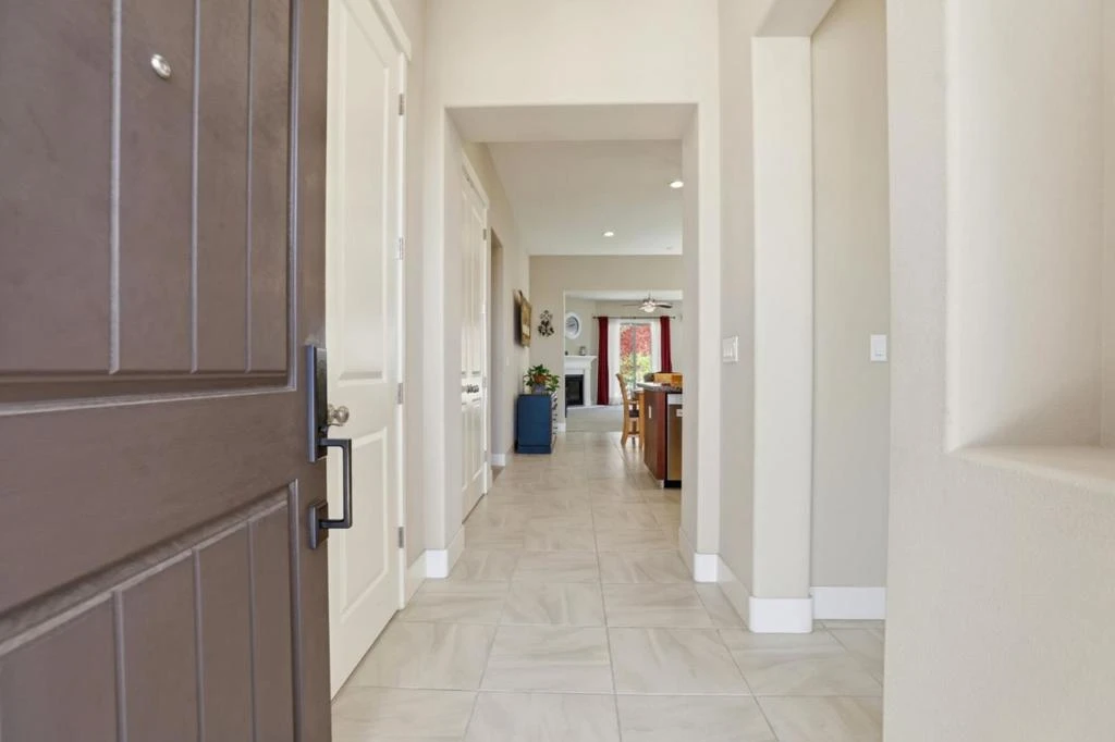 Fantastic Santana Ranch Single Story - This Anderson Home "Monterey" Model w/No HOA is approx. 2003 SF w/4 beds & 2 full baths on a 7,980 SF lot. Welcome to your fully landscaped low maintenance front yard w/covered entry, & 8 ft. tall insulated front door. High ceilings greet you w/tiled entryway & spacious front bedroom & open concept kitchen that features granite counters, Island w/sink, stainless steel Bosch appliances, gas cooktop, & built-in oven & microwave. Tall ceilings w/recessed lights & a gas fireplace living room make for comfortable open concept living & entertaining. 8 ft tall interior doors give the home a grand feel & are a wonderful accent to the spacious bedrooms. The hall bath has marble countertops, double sinks & a tub shower combination. The interior laundry leads to a fully finished attached garage w/ efficient tankless water heater & wide garage door. The main bedroom retreat features tall ceilings, rear yard access, ensuite bath w/double sinks, marble countertop, water closet, stall shower, sunken tub & walk-in closet. The home is equipped with a fire suppression system & security alarm. Bedrooms pre-wired for cable. Rear yard has low maintenance landscaping & is pre-plumbed for a gas BBQ & has external electrical outlets. Community Park & School Nearby.