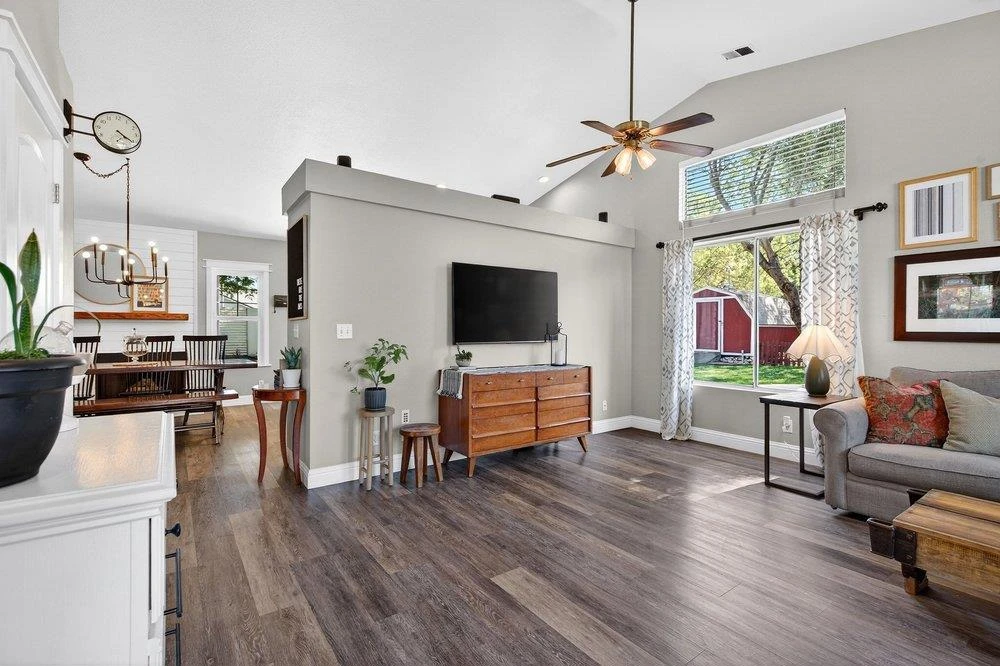 Situated at the end of a quiet cul-de-sac, 1991 Ervin Court is a beautifully updated 4-bedroom, 2-bath home set on an extra-large lot in an established neighborhood close to schools and shopping. You're welcomed into an inviting living room where wide-plank LVP flooring sets the tone with its warm, modern look and seamless flow throughout the home. Just beyond, the updated kitchen shines with granite countertops, a subway tile backsplash, stainless appliances, a farmhouse sink, and an island that anchors the room and creates the perfect gathering space. The dining area offers charm and character, featuring a cozy fireplace framed by a shiplap accent wall. The remodeled hall bathroom continues the cohesive updates, giving the home a fresh, move-in-ready feel throughout. Out back, the generous 12,000+ sq ft lot delivers flexibility and room to enjoy. Relax under the pergola-covered patio, soak in the hot tub, or gather around the fire pit on cool evenings. With a 22x16 RV parking pad, an extra-large (12x16) shed (with power) ideal for hobbies or storage, a gated garden area, and a dedicated dog run, this backyard is designed to work as hard as it entertains. Beautiful updates, functional outdoor space, and a peaceful cul-de-sac location this one truly checks all the boxes.