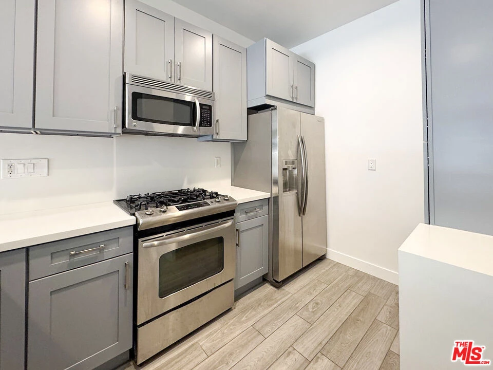 Located in the heart of H-O-L-L-Y-W-O-O-D - a place of ambition, success and glamour, this immaculate condo with large private patio has everything you're looking for! Walk-in and fall in love with an open layout that flows seamlessly from the fully equipped kitchen and dining area through the living room to the outdoor patio, which provides direct access to the street. This modern kitchen comes complete with stainless steel appliances and has ample cabinet and cupboard space for storage. The condo features high ceilings, recessed lighting, central AC/heat, brand new flooring, and in-unit washer and dryer. This corner unit boasts abundant natural light, from windows on three sides, making the home bright and spacious. The primary suite overlooks your own private outdoor patio and it has a large ensuite bath with dual vanity & soaking tub. This recently built condominium complex with architectural flair, offers a fitness center, has an inviting lobby and provides abundant guest parking.