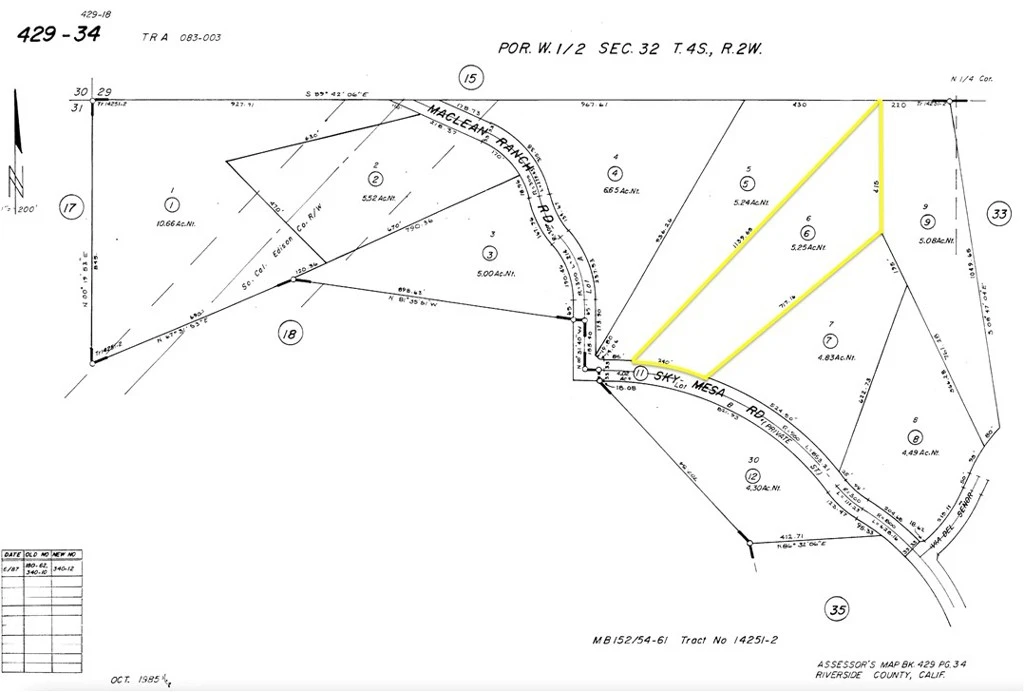 Discover the potential of this exceptional 5.25-acre estate view lot nestled within the prestigious gated community of The Ranches at Sky Mesa. This rare offering is ideal for builders, contractors, or investors seeking privacy, natural beauty, and high-end development potential. Perched at approximately 2,700+ feet in elevation, the north-facing parcel boasts breathtaking, unobstructed views of snow-capped mountains, Lake Perris, Phantom Lake, rolling hills, and dramatic sunsets. The natural terrain features striking rock outcroppings—ideal for designing custom waterfalls, sparkling pools, and serene ponds to create a true resort-style oasis. This exclusive community features million-dollar custom homes, underground utilities, and excellent 24/7 gated security enhanced by high-tech surveillance cameras. Each parcel maintains a minimum of five acres and allows up to four horses, with mobile homes prohibited to preserve the estate-quality aesthetic. Homes must be a minimum of 2,800 square feet with at least a three-car garage, ensuring architectural consistency and luxury throughout the neighborhood. A site plan has already been prepared for this lot, offering a head start on your dream home or investment project. Utilities include district water, electric, and phone lines located in the paved street, and the property is in a propane and septic area. The lot has clearly marked corners and is accessible through gated entry points north off Nuevo Road and south off Juniper Flats Road. There's ample space for additional structures such as patios, garages, horse facilities, walking trails, or other outdoor amenities. Conveniently located near I-215, Highway 74, and the Ramona Expressway, this property offers easy access to shopping, schools, medical centers, parks, and regional airports. It sits between Perris and Diamond Valley Lakes and is just 20 miles from Lake Elsinore—Southern California’s largest freshwater lake—offering year-round opportunities for fishing, boating, water sports, and more. Centrally located for commuting to Riverside, San Diego, Orange, Los Angeles, and San Bernardino Counties. As a bonus, financing may be available (OMC) with as little as 15% down, making this an outstanding opportunity for qualified buyers and investors. Don't miss the chance to secure this stunning view lot in one of Southern California’s premier private communities. Call today—must see to appreciate!