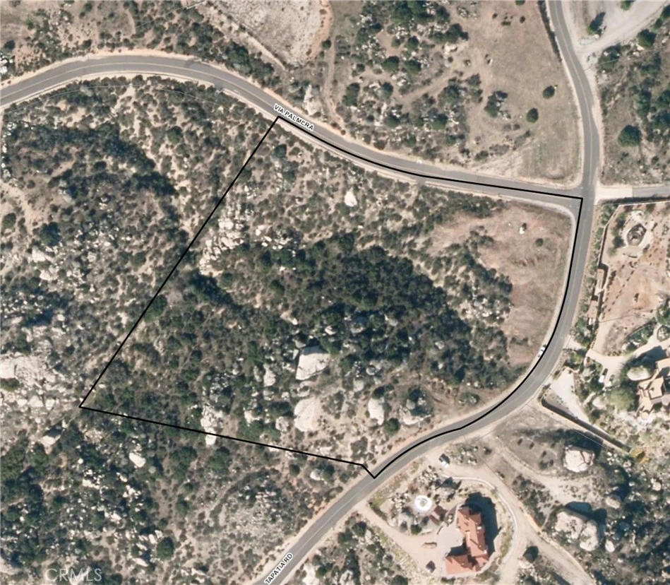VACANT lot #37. Tract 1 HUGE SIX PLUS (6.63+-) CORNER VIEW ACRES in GATED "The Ranches @ Sky Mesa" is in SOUTHWESTERN RIVERSIDE COUNTY, CA. This PRESTIGIOUS HOA COMMUNITY consists of 77 lots with 2,800 minimum sq. ft.+ estate homes on a minimum of five (5)+ acres. Four horses allowed. No mobile homes allowed will help to grow equity. Underground utilities (SCE & EMWD) in paved streets. VACANT VIEW LOT is on the SW corner of Tapatia and Via Palmera. Excellent high ground VIEW site (Diamond Lake & Menifee Valley). Grand frontage of 610+- feet on Tapatia Rd. Natural rock formations and habitat. Fire hydrant at the end of the cul-de-sac. Septic and propane area. Security gates at the main entrance off Juniper Flats Road and the north entrance off Nuevo Road. The security high-tech cameras are well maintained and monitored. Buzz in your guests. Easy access to the Ramona Expressway and Highway 74 leading to the I-215 to the West or realigned Hwy 79 going East. This gated estate community is centrally located between Los Angeles, Orange, San Bernardino and San Diego County. Call about lender financing with 15% down!