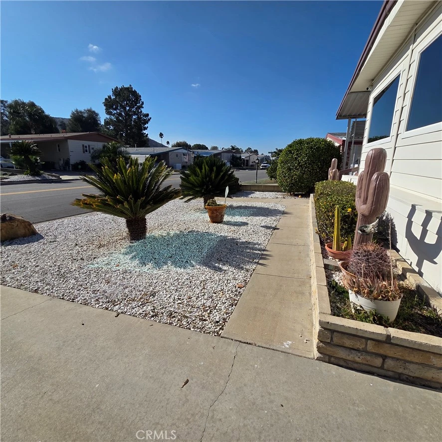 Welcome to this newly updated 2-bedroom, 2 full bath home located across from the gold course in the highly desirable 55+ community of Highland Palms Senior Estates and Country Club. As an owner in this community, you own the land and there is no Space Rent! This home provides covered parking and 2 large sheds in the back. The home was upgraded with vinyl waterproof flooring, quartz counter tops and 2 living areas perfect to add a 3rd bedroom or have a formal dining area. The home was recently painted on the interior and exterior and has n ewer windows in the front and new sliding glass door by the covered front patio. the front is located right across from the golf course and has beautiful mature fruit trees. The HOA fee is low and offers access to pickleball courts, a heated/saltwater swimming pool, executive golf course, sauna, card room, billiards room, fitness room, library, bingo, picnic/barbecue area, pickle ball, RV storage, secure mail room, and much more. The home is move-in ready and the seller is motivated.