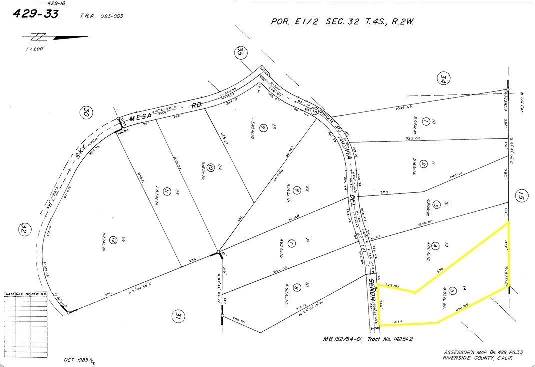 Set within the exclusive gated community of The Ranch at Sky Mesa, this exceptional 4.85-acre residential parcel offers the perfect canvas to create a custom estate surrounded by natural beauty and privacy. With only 77 homesites throughout the community, residents enjoy a rare blend of open space, tranquility, and upscale rural living. The property features generous usable acreage, ideal for designing a sprawling home, guest quarters, or equestrian amenities. Private paved streets and underground utilities are already in place, providing both convenience and a clean, unobstructed landscape. The community’s thoughtful planning helps preserve long-term value while maintaining a peaceful, secluded atmosphere. Perched at an elevated setting, the lot captures sweeping panoramic views of the surrounding hills, valleys, and distant mountain ranges—offering stunning sunrises, colorful sunsets, and seasonal snowcapped peaks. The location strikes an ideal balance between privacy and accessibility, with nearby freeway connections making commuting and daily conveniences easily within reach. Whether you're envisioning a luxury custom home, a retreat-style residence, or an equestrian-friendly property, this expansive lot presents a rare opportunity to build in one of the area's most desirable gated communities. Bring your vision and make it a reality at The Ranch at Sky Mesa.