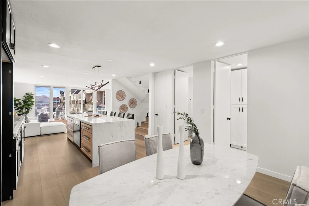 An exceptionally refined residence set within the coveted collection of waterfront homes along Christiana Bay. Encompassing 1,500 square feet of beautifully reimagined living, the home is defined by its serene connection to the water and its thoughtfully curated modern-natural aesthetic. Every detail of the remodel was designed to complement the architecture, highlight the bay views, and create a warm, contemporary retreat. At the heart of the home is an open kitchen anchored by a striking marble waterfall island, paired with Samsung Bespoke AI oven, Samsung Bespoke smart dishwasher, and a sleek induction cooktop. Organic textures, natural stone surfaces, designer faucet and handles, and designer lighting elevate the adjoining living and dining spaces. Upstairs, the primary suite enjoys its own private balcony overlooking the bay, offering a peaceful vantage point for morning light and evening breezes. The second bedroom is generously sized and features an additional retreat or office, ideal for work, guests, or a quiet lounge space. Throughout the home, the west-facing orientation captures incredible panoramic views of the bay and delivers unforgettable sunsets each evening. The exterior continues the interior’s refined narrative with unobstructed water views through glass railings from the first-level terrace with large-format tile, 16 feet of water frontage, creating an exceptional setting for open-air living. Further enhancing the property’s on-water lifestyle is a private, low-maintenance dock accommodating a 26-foot vessel plus 5 feet and a 31-foot overhang. Residents also enjoy exclusive access to the community pool and barbeque areas, along with convenient proximity to the region’s amenities, recreation, and coastal offerings.