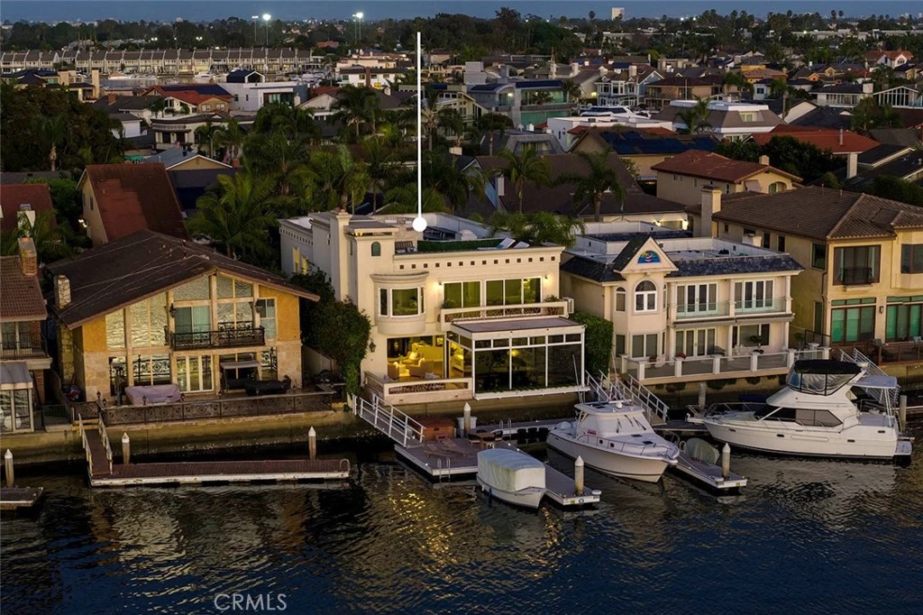 Properties with this rare combination of views and scale are seldom offered along the coveted main channel of Huntington Harbour. Set on a 5,000-square-foot parcel, the home and its private surroundings are arranged in deliberate sequence, maintaining a unique connection to the open water and its splendor. Reconstructed by notable architect Karen T. Otis as a beautiful exploration of light, water, and movement, the structure is articulated through craftsmanship quality; a thoughtful, enduring layout; and a light, textural palette. An immediate atmosphere of volume and detail is realized through a spacious, gated courtyard and atrium, continuing to a striking two-story foyer with a sky-lit oculus, and an ambient water feature delicately defining the entry’s perimeter. The principal level unfolds as an open expanse encompassing a generously proportioned kitchen, formal and informal living and dining areas – all with captivating triple-channel view orientations. Walls of glass retract to extend the interior to a waterside terrace, along with an all-glass room to enjoy the on-water environment at any time or season. The second-level accommodations were carefully planned to enhance privacy, with the resort-style primary suite and wardrobe room positioned to capture panoramic views from nearly every vantage, along with its own channel-front balcony. A third-level observation and entertaining deck – an uncommon attribute of homes in the region – presents an extension of livability amidst a spectacular canvas of tranquil waterways, sunsets, and city lights. Crowning the property is a recently upgraded private dock with berthing capacity for an approximate 65’ vessel and additional craft up to about 30’; as well as a dock extension with a ‘floating’ spa and lounge area ideal for enjoying the water’s edge. Additional complements to this exceptional offering – an elevator; refined finishes; custom millwork; abundant storage; whole-house solar; tankless water heating; a finished three-car garage with space for two vehicles in-drive; along with direct access to the Harbour’s main channel, and close proximity to famed Mothers Beach, and the finest local amenities, resources and recreation.