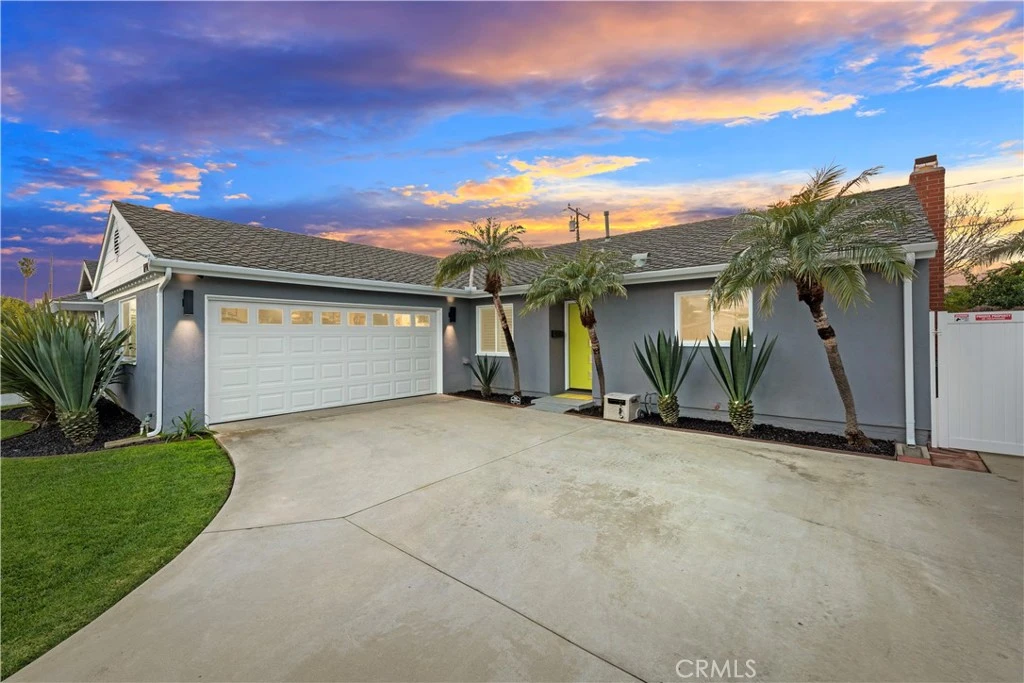 Welcome to this stunning turnkey, fully remodeled Huntington Beach home where modern upgrades and coastal charm come together in perfect harmony. Just minutes from the beach, a neighborhood park, and top local schools, this move-in ready gem offers an exceptional blend of comfort, style, and location. Converted from 4 to 3 bedrooms, the open floorplan creates a beautifully inviting space. From the moment you step inside, you'll be impressed by rich Hickory wood plank flooring, custom plantation shutters, and abundant natural light pouring through newer double pane windows and sliders. The living room is a true showpiece, featuring built-in custom bamboo shelving with integrated LED lighting — ideal for displaying your personal style. The gourmet kitchen boasts sleek custom bamboo cabinetry with soft-close drawers, a large island, breakfast bar with a built-in microwave, open shelving, and European white quartz counters throughout. A professional Wolf 6-burner gas range takes center stage, joined by premium stainless-steel appliances including a Bosch dishwasher. Just off the kitchen, a stylish mini bar with quartz countertop, bamboo shelving, and a wine and beer refrigerator makes hosting effortless. Both bathrooms have been completely remodeled with marble tile, bringing a spa-like feel to your daily routine. The spacious primary bedroom includes direct garage access. Major system upgrades include a Presidential TL roof (2017), newer furnace and ductwork, tankless water heater, and rain gutters. New interior and exterior doors, garage door, exterior paint, vinyl gate, and side fence complete the exterior, while fully landscaped front and back yards offer polished, low-maintenance curb appeal. Out back, a covered patio sets the scene for relaxed entertaining, with exterior plug-ins, sunshades, and an enclosed dog run. Smart home features include a Ring camera system and remotely controlled garage door. Washer, dryer, and mounted TV included — truly turnkey. All that's left is to move in and enjoy the Huntington Beach lifestyle!
