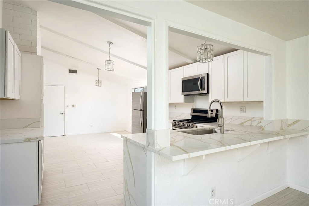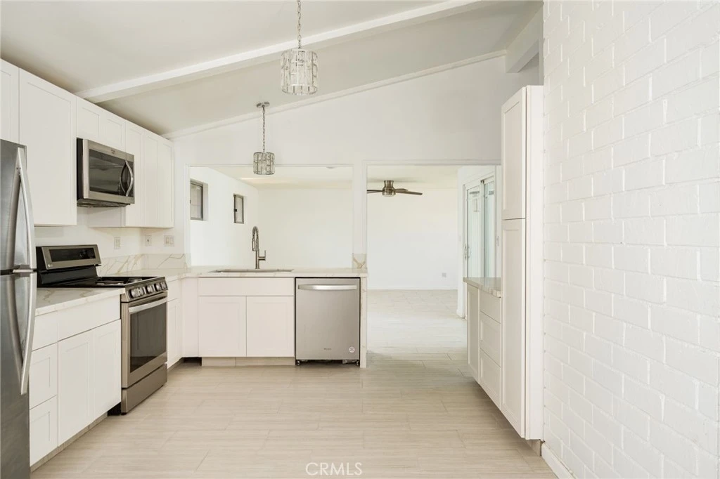 Beautifully remodeled single-level home in a cul-de-sac location offering approximately 1,800 square feet of comfortable living space. The updated kitchen features stainless steel appliances, a 5-burner range, farmhouse sink, dishwasher, and refrigerator, along with new tile flooring and updated light fixtures. The home offers two spacious living areas and a dining space, with ceiling fans, newer light fixtures, and laminate wood flooring in the bedrooms throughout. The extra-large primary suite includes a walk-in closet and updated bathroom with a modern shower and upgraded sink cabinetry. Enjoy the backyard with a heated pool and spa, perfect for relaxing or entertaining in the Southern California sunshine.