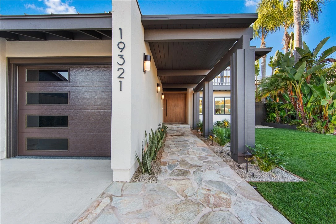 Welcome to this masterfully reimagined residence in the prestigious Upper SeaCliff neighborhood, where mid-century design meets modern coastal luxury less than one mile from Surf City's iconic beaches. Nestled on a quiet cul-de-sac and within walking distance of the Huntington Beach Wetlands, local parks, the HB Urban Forest, and top-rated schools—and just minutes from The Huntington Club—this home offers an exceptional lifestyle in one of Orange County’s most desirable coastal enclaves. Recently expanded and meticulously renovated with indoor-outdoor entertaining in mind, this four-bedroom, two and a half-bathroom home features an open, light-filled floor plan complemented by high-end finishes and sophisticated designer touches throughout. Upon entry, you're welcomed by a striking modern-line pivot door, setting the tone for the refined interiors. The kitchen is a chef’s dream, showcasing Taj Mahal quartz countertops, Thermador appliances, and an ActiveWall awning-style passthrough window that opens to the beautifully landscaped backyard. A spacious living area flows effortlessly outdoors through WinDor bifold doors that lead to a firepit lounge—ideal for entertaining or relaxing year-round. The primary suite offers a spa-inspired wet room with soaking tub, dual vanities, and serene, resort-style finishes. One secondary bedroom includes a private balcony with neighborhood views—ideal for enjoying morning light and coastal breezes. Additional features include luxury wood-look flooring, roman clay fireplaces, black-framed Milgard windows, recessed lighting, new plumbing fixtures, updated interior doors, and a private elevator. The finished garage, upgraded with epoxy floors and new doors, offers flexible space for storage or hobbies. System upgrades include a new furnace, AC, water heater, and sleek metal roof. The oversized lot is fully landscaped with new concrete, sod, mature trees, flagstone entry, and dramatic lighting for standout curb appeal. With four bedrooms, multiple living areas, and expansive outdoor space, this turnkey home delivers the best of coastal Huntington Beach living in one of Orange County’s most desirable neighborhoods.