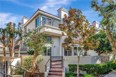 Discover the pinnacle of beachside sophistication at 7973 Ubeda Circle, an elegant residence in The Waterfront, Huntington Beach’s premier gated enclave just moments from the sand. Nestled in a serene interior location, this three bedroom, two-and-one-half bathroom home spans nearly 2,700 square feet, offering a refined blend of modern luxury and effortless coastal living. Enter to a meticulously curated space featuring rich hardwood flooring, travertine accents, and plush high-end carpeting. Custom screen doors welcome the ocean breeze, while crown molding, plantation shutters, and designer ceiling fans add to the home’s elevated ambiance. A premium sound system in the living and family rooms ensures seamless entertainment. The gourmet kitchen is a chef’s dream, boasting custom cabinetry, a spacious breakfast bar, and an effortless flow into the inviting family room—ideal for both intimate gatherings and stylish entertaining. A dramatic circular dining room with a custom wine grotto, intricate wrought iron detailing, and a built-in wine fridge sets the perfect scene for memorable dinner parties. The well-appointed layout includes a first-floor guest suite with a private en-suite bath, perfect for visitors or multi-generational living. The third-floor executive office, complete with custom built-ins, leads into a lavish primary suite, where a cozy fireplace, expansive walk-in closet, and spa-inspired bath with dual vanities, a soaking tub, and a walk-in shower create a true sanctuary. An adjoining retreat offers flexibility as a private fitness space, additional office, or potential third bedroom conversion. Additional features include a convenient interior laundry room, an attached two-car garage with epoxy flooring and custom storage, and effortless access to the community’s resort-style amenities, including a pristine pool, spa, and barbeque area. With Pacific City, Downtown Huntington Beach, and the iconic Huntington Beach Pier just a short stroll away—and the Hyatt and Hilton resorts at your fingertips—this is more than a home; it’s an invitation to experience the best of coastal Orange County.
