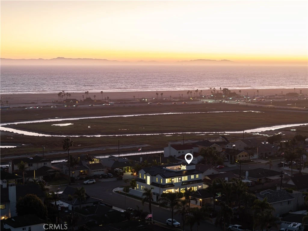 Completed in 2025, this brand-new coastal estate at 9121 Christine Drive sets a new standard for luxury in Huntington Beach. Positioned on a premier corner lot, the home offers nearly 5,000 sq. ft. of living space and a spectacular 560 sq. ft. rooftop deck with unobstructed ocean views. Designed with both form and function in mind, it combines timeless architectural detail with state-of-the-art construction and absolutely premium materials. Step inside to soaring 11-foot ceilings adorned with custom wood beams, wide-plank European white oak flooring, and natural light streaming through Milgard windows and French doors. Indoor and outdoor living flow seamlessly thanks to a dramatic La Cantina pocket door that opens to the main entertaining space, anchored by a Belvedere book-matched marble fireplace. The main kitchen showcases white oak cabinetry, Taj Mahal quartzite counters, a 72” Sub-Zero refrigerator, 48” Wolf range, and Sub-Zero wine fridge. A separate butler’s kitchen, with Thermador appliances and a walk-in pantry, ensures effortless hosting. The primary suite is a true retreat with vaulted ceilings, a stone fireplace, alabaster marble chandeliers, and a 30-foot balcony capturing ocean breezes. Its spa-inspired bath boasts full-slab marble shower walls, a custom double vanity with Brizo polished gold fixtures, and a boutique-style walk-in closet with illuminated white oak cabinetry. Additional highlights include a three-car garage with custom rift oak doors, an elevator servicing all levels, two laundry rooms, a solar system, and a durable metal roof. Designer guest baths feature Porcelanosa and Ann Sacks tile, while a Taj Mahal quartzite wet bar adds sophistication to the entertaining level. With no expense spared and every finish hand-selected, this one-of-a-kind residence blends architectural excellence with unmatched coastal living—moments from the sand and surf of Huntington Beach.