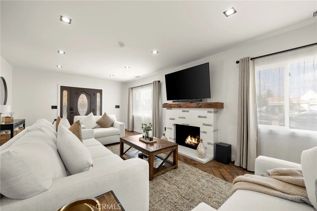 Modern Spanish Charmer in Exclusive Walnut Park! Welcome to this stunning 3-bedroom, 2-bath modern Spanish-style home, beautifully reimagined for today’s lifestyle. Making its first debut on the market in over 20 years, this fully turnkey residence combines timeless character with thoughtful, custom upgrades rarely found in flipped homes. Step inside to discover a light-filled living area anchored by a statement fireplace, elegant herringbone tile flooring throughout, and sleek recessed lighting that sets the tone for modern sophistication. The seamless layout flows into a spacious dining area and an inviting kitchen adorned with custom cabinetry & top of the line appliances. French doors open to a charming covered patio with wood beam accents, creating an effortless indoor-outdoor flow. The spacious backyard is designed for gatherings and even a fruit-filled persimmon tree. An oversized one-car garage offers additional storage or ADU potential (buyer to verify). Nestled in the highly sought-after Walnut Park, this home sits in a quaint pocket community tucked away from the hustle of major freeways, offering peace and privacy while still minutes from shopping, dining, and entertainment that Huntington Park has to offer. Homes in Walnut Park are rare to come by, and this one checks every box: charm, upgrades, and location. Don’t miss your chance to own a piece of this exclusive community.