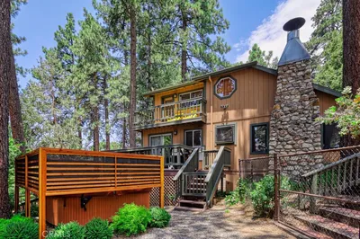 Lily's Landing is the perfect escape from the hustle and bustle of city life. Nestled in an ideal location in Idyllwild's Fern Valley. Enjoy close proximity to both trailheads and local downtown area with award winning restaurants and unique shops. The unique outdoor spaces offer stunning views, hot tub, grill, lookout tower and beautiful redwood deck spaces. Beautiful wood beams and hardwood floors are a focal point as you enter the cabin. The kitchen is the perfect size with updated appliances. The oversized master bedroom is a highlight with direct access to the back yard and ensuite master bathroom. Upstairs is a second master bedroom with half bath. Fully equipped and permitted as an airbnb with excellent reviews! All furniture included. Don't miss this unique and lovingly maintained cabin!