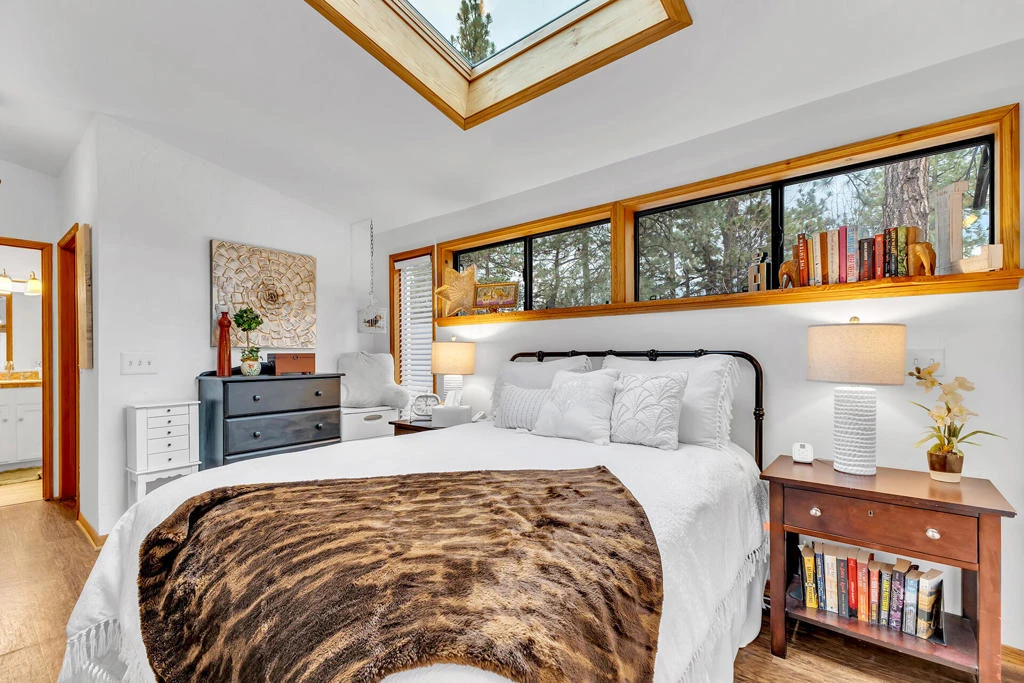 Discover this storybook cabin in the heart of Idyllwild, offering charm, privacy, and thoughtful upgrades throughout. A welcoming asphalt circular drive and carport provide easy year-round access. Inside, vaulted ceilings and skylights fill the home with natural light, while the cozy wood burning stove creates a warm focal point in the living room. The upgraded kitchen features modern appliances, dishwasher, nice counter space, and a delightful breakfast room or office. Two spacious bedrooms, each include their own en-suite baths, provide comfort for residents or guests. The guest bath is off the Living Room for convenience. A washer and dryer are conveniently located for everyday ease and the cabin has Air Conditioning too!! Enjoy peaceful mountain living from the inviting front porch or the expansive back deck overlooking the large fenced backyard-ideal for pets, gardening, or gathering with friends. Three storage buildings offer abundant space for tools, seasonal items, or hobby equipment. With its charming character, practical amenities, and serene setting, this cabin is a perfect full-time home, weekend getaway, or investment opportunity in beautiful Idyllwild. Go to my homes.com listing for a 3D overview, floor plans and Matterport walking tour.