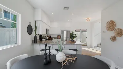 Discover your sleek and stylish retreat in this modern three-bedroom, two-and-a-half-bathroom townhouse featuring designer interiors, private outdoor space, and an ideal location in the heart of Imperial Beach, California, just minutes from the beach. Thoughtfully arranged over 1,363 square feet, this home impresses with gorgeous LVP flooring, tall ceilings, recessed lighting, ceiling fans, and oversized windows, creating a bright and airy ambiance. The open-concept design welcomes you with seamlessly connected living and dining areas, perfect for relaxing and entertaining. Chefs will love the open kitchen, where charming blue and white cabinetry and quartz counters surround stainless steel appliances, including a gas range, French door refrigerator, dishwasher, and built-in microwave. Enjoy casual meals under lovely woven pendants at the expansive breakfast bar/island, or step out to the balcony for morning coffee or after-dinner drinks. A convenient powder room completes the main level. Upstairs, the expansive owner’s suite is a tranquil escape complete with generous closet space and an en-suite bathroom featuring a double vanity, separate walk-in closet, and shower. Two spacious secondary bedrooms offer versatility for guests or home office space alongside a well-appointed full-hall bathroom. Central HVAC, an in-unit washer-dryer, and a two-car garage add comfort and convenience to this exceptional Imperial Beach beauty. Bayside Landing community amenities include a pool area with a hot tub, sun deck, showers, playground, and barbecue area. In this ideal Imperial Beach location, you’re less than a mile from the beach and Imperial Beach Pier. Enjoy easy access to the Navy Seal Base, great restaurants, stores, nightlife venues, Veterans Park outdoor space, and a dog park. Just 15 minutes away, you’ll find San Diego amenities, Downtown San Diego, Coronado, and the iconic Hotel Del. Short-term rentals on Airbnb/VRBO are allowed.