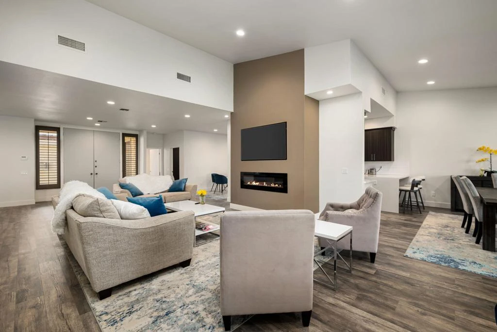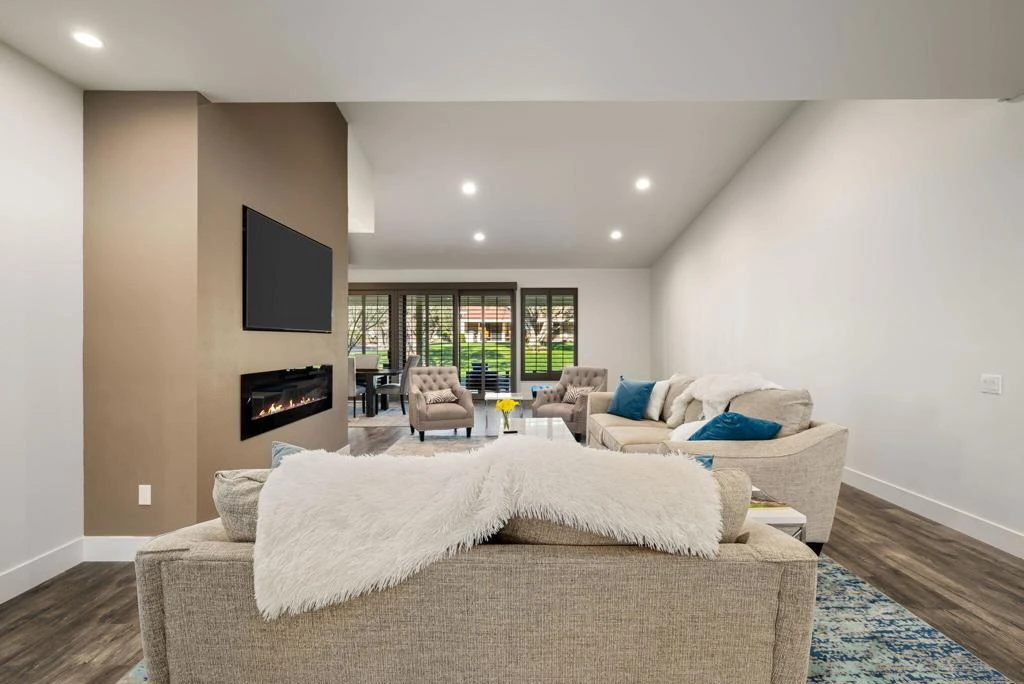 This gorgeous remodeled 3 bedroom/3 bath home sits on a quiet interior location, inside the gates of the prestigious Desert Horizons Country Club. The home has a spacious living and dining room with over 2800 sq ft of living space. The living room's electric fireplace sets the tranquil mood around two sofas and sitting chairs. The updated kitchen is sure to please with stainless steel appliances, gas range, craftsman quality cabinetry, upgraded countertops and an eating area for 4. The dining area seats 6 and has westerly views overlooking the back patio and serene greenbelt. A luxurious primary bedroom offers a large king bed, TV, and a large walk-in closet. The ensuite bathroom has upgraded cabinets, counter tops, and a large 2-person walk-in shower with a built-in bench. Guests are perfectly accommodated with private bedrooms, TV's and their own patios. The 2nd bedroom offers a queen/double bed, walk-in closet and ensuite bath. The 3rd guest room and ensuite have a queen/double bed and a desk. Amenities: Nice linens, towels, dishes, utensils, ceiling fans and wood shutters can be found throughout the home. Relax out on the back patio enjoying outdoor scenery of the green belt area of swaying palms, mature fruit trees and the community pool and spa just steps away. Desert Horizons Country Club's 40,000 sq ft newly renovated clubhouse is a central feature of the community, offering dining options, social areas, and event spaces. Optional Social Membership for tenants to enjoy gourmet meals at the club's restaurant and participate in social events. The 8,000 sq ft state-of-the-art fitness & wellness center encompasses incredible views complete with equipment for cardio and strength training, as well as group exercise classes. The NEW Sports Pavilion includes 2 tennis and 11 pickleball courts encouraging recreational and competitive play. You are close to the El Paseo Shops, Championship Golf and fabulous restaurants and dining.
