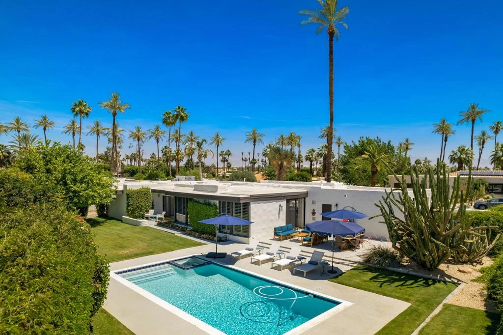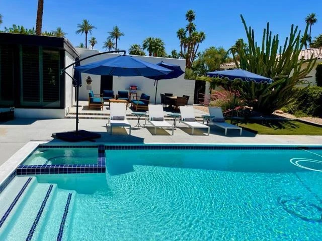 Leased Dec. 1, 2025 - April 31st, 2026. Available May - Oct. call for pricing~ Come and enjoy the ultimate desert lifestyle~ You will find this beautiful furnished 3 bed/3 bath updated home nestled in a cul-de-sac in prestigious Indian Wells. Gorgeous Southern Mountain Views await you. Enter through the double doors into this modern Hacienda home of unique finishes, Saltillo tile & wood plank floors. As you step down to the living room, there is a dramatic wall to wall windows, wood beamed ceilings w/large screen TV & as your focal point a floor to ceiling Brick Fireplace. The fully equipped Chefs Kitchen features; center Island, slab Quartz counters, custom back splash, custom finished cabinetry & Stainless Steel Appliances w/ 6 burner Gas Range/Electric Oven. Dining for 8 w/ Bar & Wine Cooler. Luxuriate in the Primary Suite with walk in shower, double waterfall shower heads, dual vanities, King-size bed and sliders that lead out to patio area. Guest Bedrooms, one with a King Bed and the 3rd with a Queen bed, TV's and ceiling fans. Interior Laundry. Entertaining Patio invites you into a newly replastered-saltwater sparkling Pool & Spa, Imagine cocktails on the Patio as you marvel at the sunsets enjoying the large private backyard, various Cactus & mature Fruit Trees- your picture-perfect lifestyle at this premiere Indian Wells location. 2 Car attached garage complete the home. High speed Internet & Spectrum TV. Minutes away from Golf courses, Shopping & Dining.