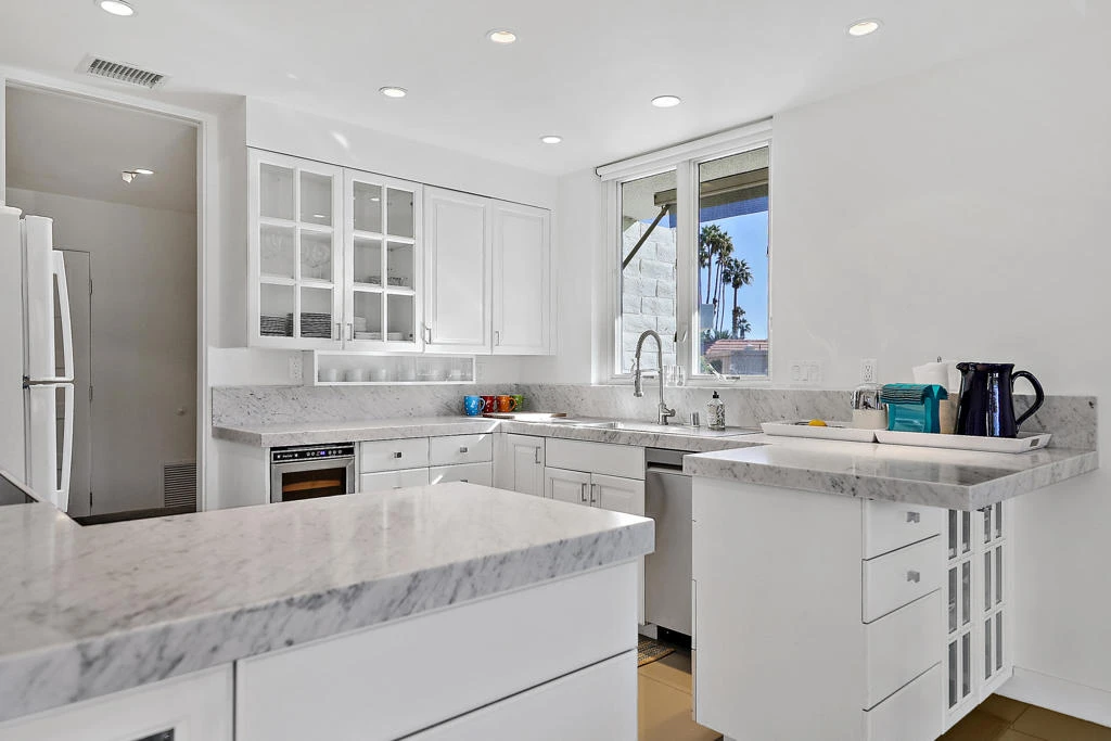 This luxury condominium is located in the highly sought after gated community of Indian Wells Country Club and offers open floor plan space and boasts natural light with an amazing mountain view from inside the living room and dining area and also from the covered back patio. 2 bedrooms 2 bathrooms. There is a smart tv in living room also in the spacious primary bedroom suite which has king bed and access to a private courtyard. The guest bedroom offers 2 queen beds and access to the private courtyard. Interior laundry. BBQ. Association pool. Garage is steps from front door. Concierge trash service means you never have to worry about which day has trash service pick up. Owner includes wireless Internet and utilities up to $100-mo. 24-hour manned gate. Indian Wells CC is a member of the Invite family (formerly Clubcorp). No memberships are included. Mail is delivered to your door. Owner often uses APRIL MAY each year otherwise available. Contact agent to book.