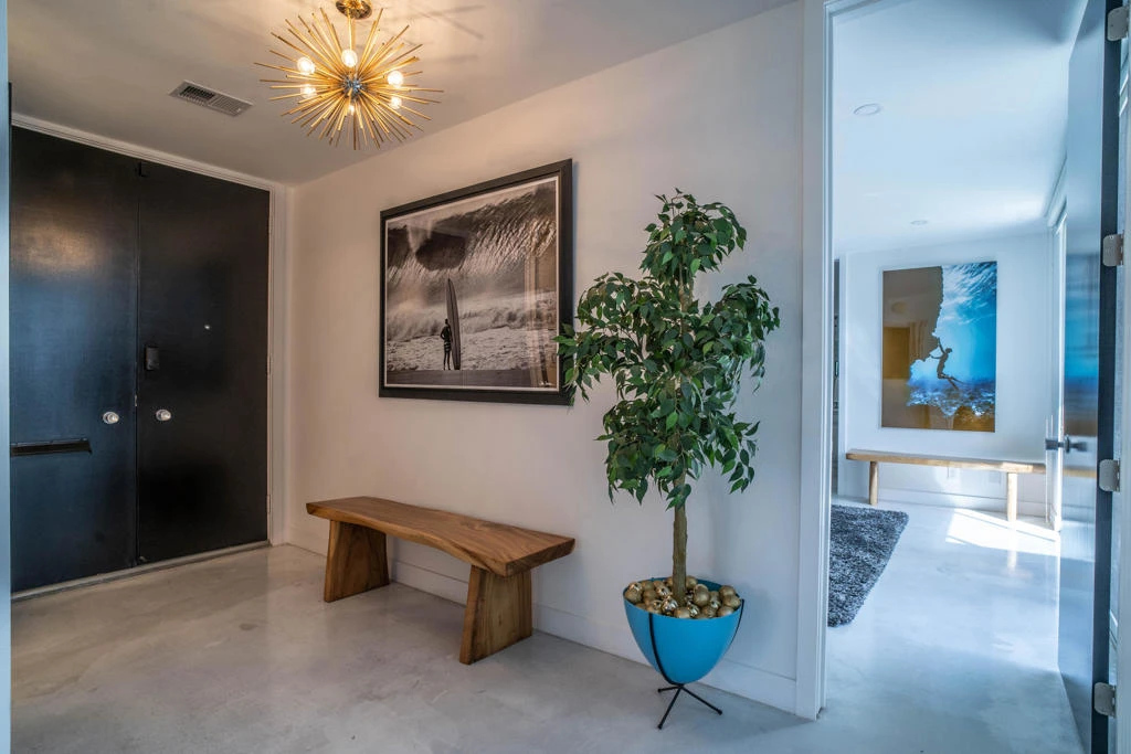 Stunning remodeled William Krisel-designed Mid-Centry Modern Indian Wells Villa located within the highly-sought Sandpiper Community at Indian Wells Country Club. This condo has been tastefully updated to restore the mid-century vibe and honor the history that inspired the allure of desert living. A true masterpiece combining the past with modern luxuries and amenities. The over-sized living room has been enhanced with a floor-to-ceiling stone fireplace and custom lighting updates. The sleek kitchen is complete with stainless steel appliances, quartz countertops, a breakfast bar, custom cabinetry and has been opened to the dining room. Stained & polished concrete flooring blend the spaces throughout the home seamlessly. All bedrooms have ensuite baths, large walk-in closets and open to either the atrium or rear covered patio. The center atrium provides beautiful natural light to the entire floor plan and offers private outdoor gathering space. 2-car garage PLUS golf-cart space with ample storage space. Newer HVAC, on-demand hot water heater and new doors throughout the interior (raised to 8'}. The Laundry room was updated and redone. Located in close proximity to the clubhouse on a lush greenbelt overlooking the community pool surrounded by swaying palm trees.