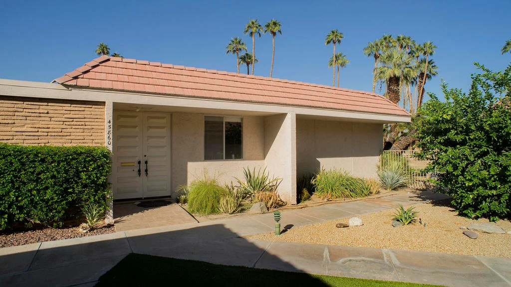 PRICE REDUCTION! First time on the market! Wonderful and spacious, 3 bedroom, 3 bath Sandpiper condo in prestigious Indian Wells Country Club. Open and bright Mid-century floor plan with gorgeous south mountain views from the kitchen and great room! Back patio overlooks the beautifully landscaped grounds and community pool. Kitchen was updated with new cabinets. Wood-like tile floors. Main bedroom has access to a private courtyard patio, en-suite bathroom with dual sinks, shower and walk-in closet. Second bedroom has access to the private courtyard patio, includes an en-suite bathroom and walk-in closet. Third bedroom has access to the back patio, and walk-in closet, third bathroom with sink, shower. Inside laundry room. Some of the original light fixtures are still hanging. Center courtyard is very private. Two car detached garage. Close to El Paseo shopping, fine dining, McCallum Theatre, golf and the world-renowned Indian Wells Tennis Garden, an ideal location!