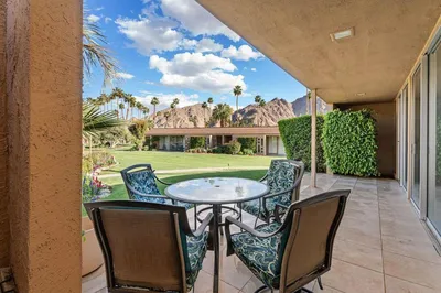 Come Experience the UNSURPASSED VALUE OF ICONIC CHARM and TRUE MID CENTURY MODERN LIVING in this beautifully reimagined 2 bedroom, 2 bathroom home in the highly coveted, gated community of CASA DORADO in INDIAN WELLS! VIEWS BEYOND EXPECTATION!! Classic architectural lines, open concept design and walls of glass create a light filled atmosphere that seamlessly connects indoor comfort and outdoor beauty! Step into the spacious living and dining areas where sleek modern finishes meet timeless style The updated kitchen showcases custom flat panel cabinetry, gleaming quartz counter tops, a cheerful backsplash , completed by a professional grade Wolf range! Perfect for everyday living and elegant entertaining. Every window captures stunning mountain and greenbelt views bringing the serene desert landscape into every room! The two generous bedrooms are thoughtfully separated for privacy. The primary suite feels like a luxe retreat with it it own patio, spa inspired bathroom, boasting a graceful connection to the outdoors. Living in Casa Dorado offers a vibrant upbeat lifestyle! Enjoy lush greenbelts, mature palm trees, scenic walking paths that create a peaceful, resort like atmosphere. Offering 6 sparkling Pools, Tennis AND Pickleball Courts and a fun Golf experience with a four hole pitch & putt complete with two Putting Greens! Neighbors connect over leisurely strolls, poolside lounging, or simply enjoying the stunning desert backdrop Life is good in Indian Wells! As a resident enjoy exclusive benefits including discounts for golf, fine dining, luxury resorts and local events, adding an extra layer of luxury to everyday life! BEAUTIFULLY MODERN, EFFORTLESSLY ELEGANT, UNDENIABLY COOL! Casa Dorado is Desert Living at its absolute Best!!!
