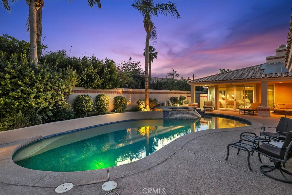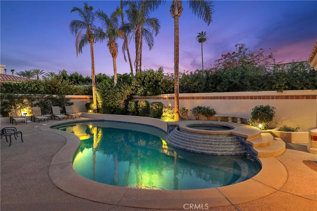 AVAILABLE MAY 1, 2026. FULLY FURNISHED AND EQUIPPED!!! PLEASE SEE THE RATES BELOW. Located in prestigious Indian Wells near the Eldorado Country Club. The highly sought-after location between Hwy 111 and the Santa Rosa Mountains is the most desired city in the desert. Very private oversized 12,600 sqft corner lot. This custom home has 4,731 sq. ft. with a vast great room, wet bar, large separate family room, library, and 12' ceilings. 6 bedrooms (library is used as a bedroom), 5 1/2 baths, numerous built-ins, pool and spa with cascading waterfall and relaxing covered patio. The home easily accommodates 12 people. Two primary suites, one at each end of the home. In addition to the 75" flat-screen TV in the great room and family room, each bedroom has a large flat-screen TV, private bath, and patio. Large granite gourmet kitchen featuring double oven, five burner gas cooktop, LARGE island with preparation sink, and Sub-Zero Refrigerator. Luxury living at its best!!! Small pets considered. AVAILABILITY: May 1- Sept 30 $8,500. (LEASED 2026 January 1 - April 30 for $15,500/mo) (LEASED 2026 November 23-December 31st) Pricing and terms available for shorter stays. Rates are by season. Owner will consider short term lease. Prices vary by month and length of stay. Other Indian Wells properties available. PERFECT FOR VACATIONS, REMODELING, OR FIRE/FLOOD SITUATIONS.