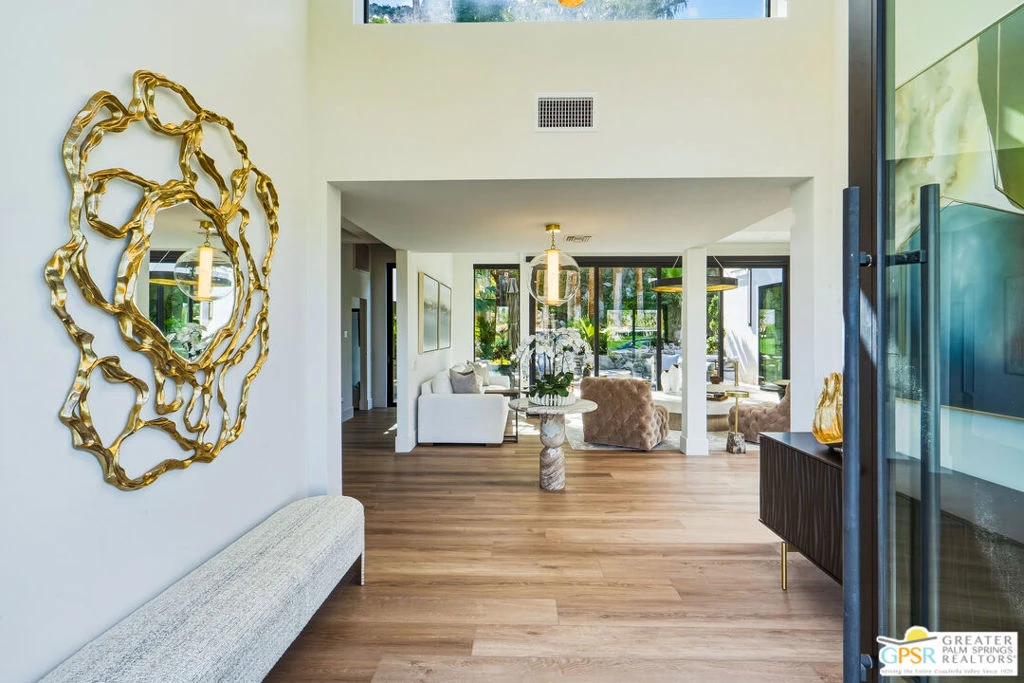 Welcome to 77013 Desi Drive, beautifully positioned against the breathtaking Santa Rosa Mountains within the prestigious Indian Wells Country Club community. This exquisitely remodeled residence offers a refined blend of luxury, comfort, and resort-style living. Step inside to discover a thoughtfully designed interior with sophisticated finishes and an inviting, modern aesthetic. The expansive primary retreat serves as a private sanctuary, featuring a spa-inspired bathroom with a soaking tub, oversized walk-in shower, and a relaxing seating area. Just beyond, enjoy the rare luxury of a private outdoor shower and tranquil seating space, creating a true spa-like experience. Each of the three additional bedrooms features its own en-suite bathroom, providing privacy and comfort for family and guests alike. The beautifully appointed chef's kitchen showcases sleek modern finishes and beautiful appliances. A custom refrigerator, wine cooler, and dedicated coffee bar with a built-in ice maker elevate the space, making it as functional as it is stylish.Seamlessly blending indoor and outdoor living, large sliding doors open to an exceptional backyard oasis designed for both relaxation and entertaining. Enjoy a resort-style pool and spa, a built-in BBQ, and a pizza oven perfect for hosting unforgettable gatherings beneath the desert sky. All of this is set against stunning golf course views, offering a serene backdrop to everyday living with the added benefit of no HOA monthly dues. This is desert luxury living at its finest.