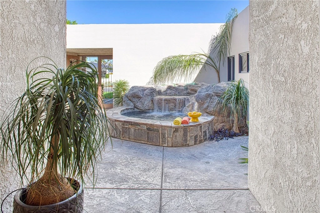 Exceptional Modernized DESERT RETREAT located in the highly sought-after Cove at Indian Wells Country Club!! This rare, spacious single-level residence offers three bedrooms plus a den, blending comfort, style, and effortless living along w/ seamless indoor-outdoor living. Designed for both relaxation and entertaining, the home features a private front courtyard with a heated PebbleTec spa and tranquil waterfall, while the rear offers a misted covered patio with a retractable awning—perfect for enjoying the breathtaking WRAPAROUND MOUNTAIN VIEWS!!! Experience true resort-style living every day, with two pools and a tennis court just steps from your backyard, or take a short golf cart ride to the 36 holes at Indian Wells Country Club. Thoughtfully remodeled and refreshed, the home showcases new plank flooring, new baseboards, new interior doors, new designer lighting, new quartz countertops, and fresh interior paint. Additional upgrades include a new water heater, updated kitchen, custom sliding door at the den, new fireplace, closet organizers, and custom window coverings in all bedrooms. A Tesla EV charger and GOLF CART INCLUDED!! With its serene, spa-like ambiance and effortless indoor-outdoor flow, this home is the ultimate desert oasis sanctuary. As an added bonus, Indian Wells residents enjoy exclusive perks, including 20% discounts at select local venues and access to five-star resort amenities at the nearby Hyatt.