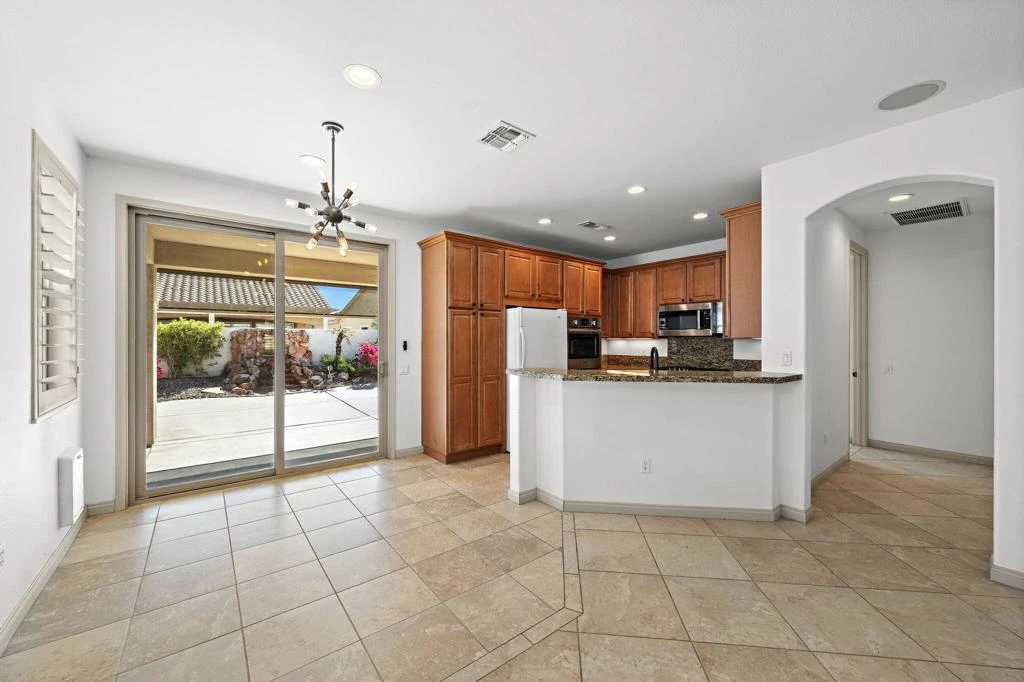 Located in the guard-gated 55+ resort-style community of Sun City Shadow Hills. This desirable San Ysidro floor plan offers comfortable desert living with 2 spacious bedrooms, 2 bathrooms, and a versatile bonus room--ideal for a home office, guest space, hobby room, or personal fitness/yoga room. The primary suite features a walk-in shower, dual vanities, and a generous walk-in closet, creating a comfortable and functional retreat. Throughout the home you'll find tile flooring in the main living areas, with carpet in the two bedrooms and bonus room for added comfort, along with custom shutters throughout and newly installed toilets in both bathrooms. The kitchen is well-equipped with granite countertops, double ovens, a gas cooktop, and a built-in microwave, your appreciate all of cabinetry making it ideal for everyday living and entertaining. A separate indoor laundry room offers a utility sink, extra counter space, and abundant cabinetry for added storage and convenience. Step outside to a large covered patio designed for relaxing and entertaining, complete with recessed lighting, a built-in BBQ, extensive hardscape, a tranquil outdoor fountain, and a new patio ceiling fan. With plenty of space for outdoor dining, morning coffee, sunbathing, or simply enjoying a good book, the backyard provides the perfect setting to enjoy the desert lifestyle. The property also features low-maintenance desert landscaping and a spacious two-car garage. Residents of Sun City Shadow Hills enjoy exceptional amenities including two clubhouses, two golf courses, fitness centers, resort-style pools, tennis, pickleball, and a vibrant calendar of social and recreational activities, making it one of the desert's premier active adult communities.