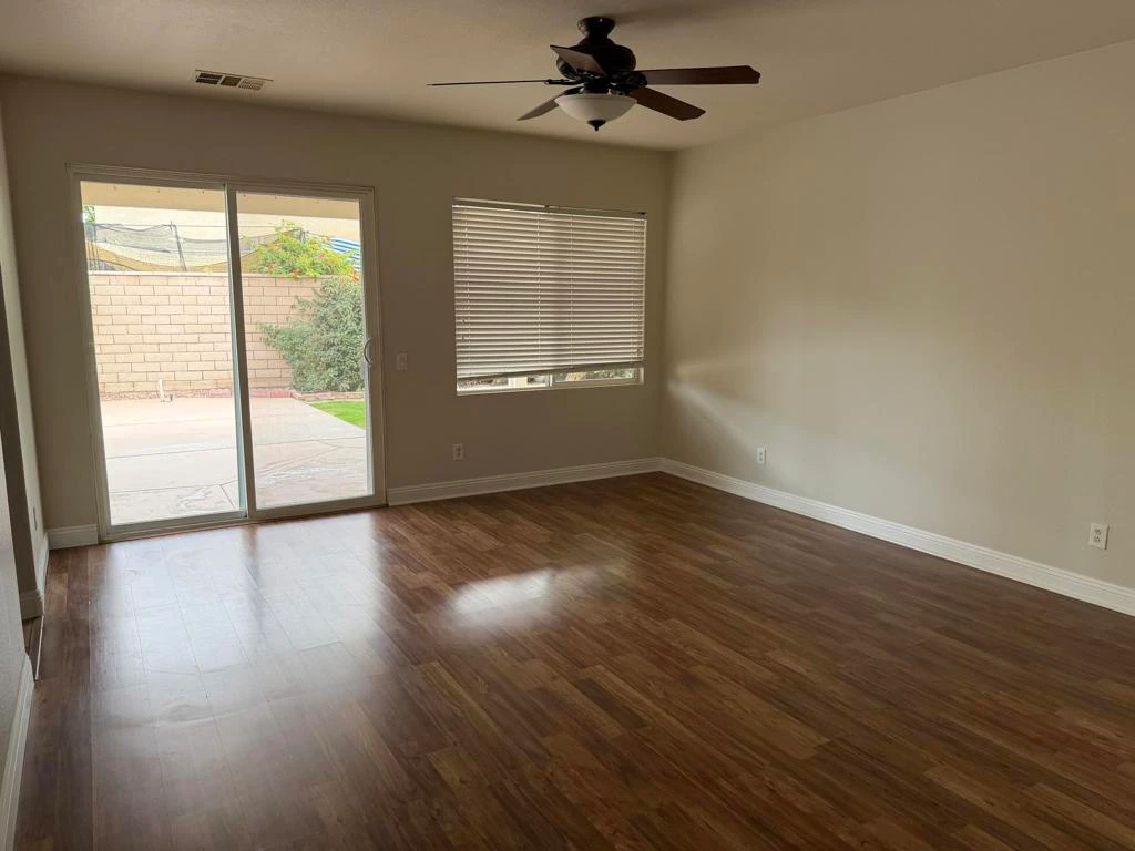 Welcome to the sought-after Desert Trace community. This well-appointed home offers an open floor plan featuring 4 bedrooms, 3 bathrooms, a formal dining room, and a private office. Two secondary bedrooms are connected by a Jack-and-Jill bathroom. The spacious primary suite includes a large walk-in closet with a built-in cabinet.Freshly painted throughout the entire home, including garage walls and floors, with new baseboards throughout.The home features laminate and tile flooring throughout and has been recently updated with fresh interior paint. The kitchen is beautifully designed with granite countertops, an oversized center island, built-in stove, microwave, and oven. Additional highlights include a laundry room with built-in storage and a 2-car garage.The oversized backyard is ideal for entertaining and includes a Pebble Tec pool and spa, covered patio, and fire pit. The property includes a leased solar system at $149.16 per month, providing significant savings on electricity costs.