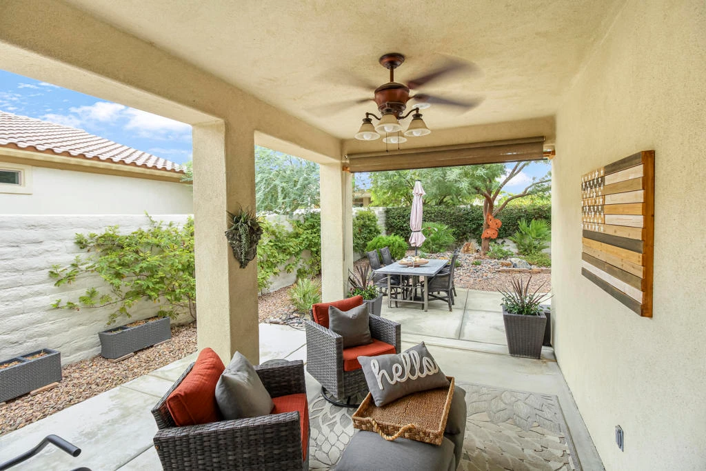 Perfectly furnished for you. Lease (3 months or longer). This Charming San Vincente Plan has everything you need to enjoy. Two Bedrooms, Two Baths with Den/Office and an Exceptional Backyard with Covered Patio and Open Air Space for Entertaining. A Spacious 2 Car Garage is attached with Storage Cabinets.