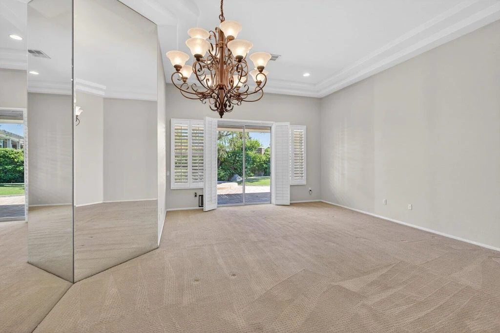 Welcome to the Prestwick Model -- one of the few of its kind built in Heritage Palms Country Club. With 2,200 sq. ft. of living space, this home offers a great layout with 3 bedrooms, 2 bathrooms, and a versatile den that works perfectly as a home office, hobby room, or extra space for guests. As you step inside, you'll find a bright living and dining area that's perfect for hosting friends and family. The spacious great room, complete with a cozy fireplace, is a wonderful spot to relax and unwind. The open kitchen offers plenty of cabinetry and counter space, a center island, and a breakfast nook that's just right for morning coffee or casual meals. Luxury vinyl and tile flooring run through the main living areas, while one of the guest bedrooms features comfortable carpeting. Custom window coverings, including silhouettes and shutters, add a nice touch of style throughout the home. The primary suite is a peaceful retreat with a large walk-in closet and an ensuite bathroom featuring a soaking tub and walk-in shower. Two guest bedrooms are located nearby and share an updated bathroom with a modern walk-in shower. The den provides additional flexible space for guests, an office, crafts, or whatever fits your lifestyle. This home also includes several thoughtful upgrades such as a newer water heater, updated AC and furnace, ceiling fans throughout, and an air-conditioned two-car garage. Step outside and you'll find beautifully landscaped front and back yards designed with easy-care desert landscaping and artificial turf. The gated front patio, along with the paver driveway and patios, adds great curb appeal. Out back, the private yard feels like your own little oasis with a spa, a partially covered patio, and plenty of room to relax or entertain.Living in Heritage Palms Country Club means enjoying resort-style amenities including an 18-hole championship golf course, indoor and outdoor pools, fitness center, tennis and pickleball courts, and an active clubhouse with dining and social events throughout the year. And you're just minutes from the great shopping, dining, and entertainment the Coachella Valley has to offer.